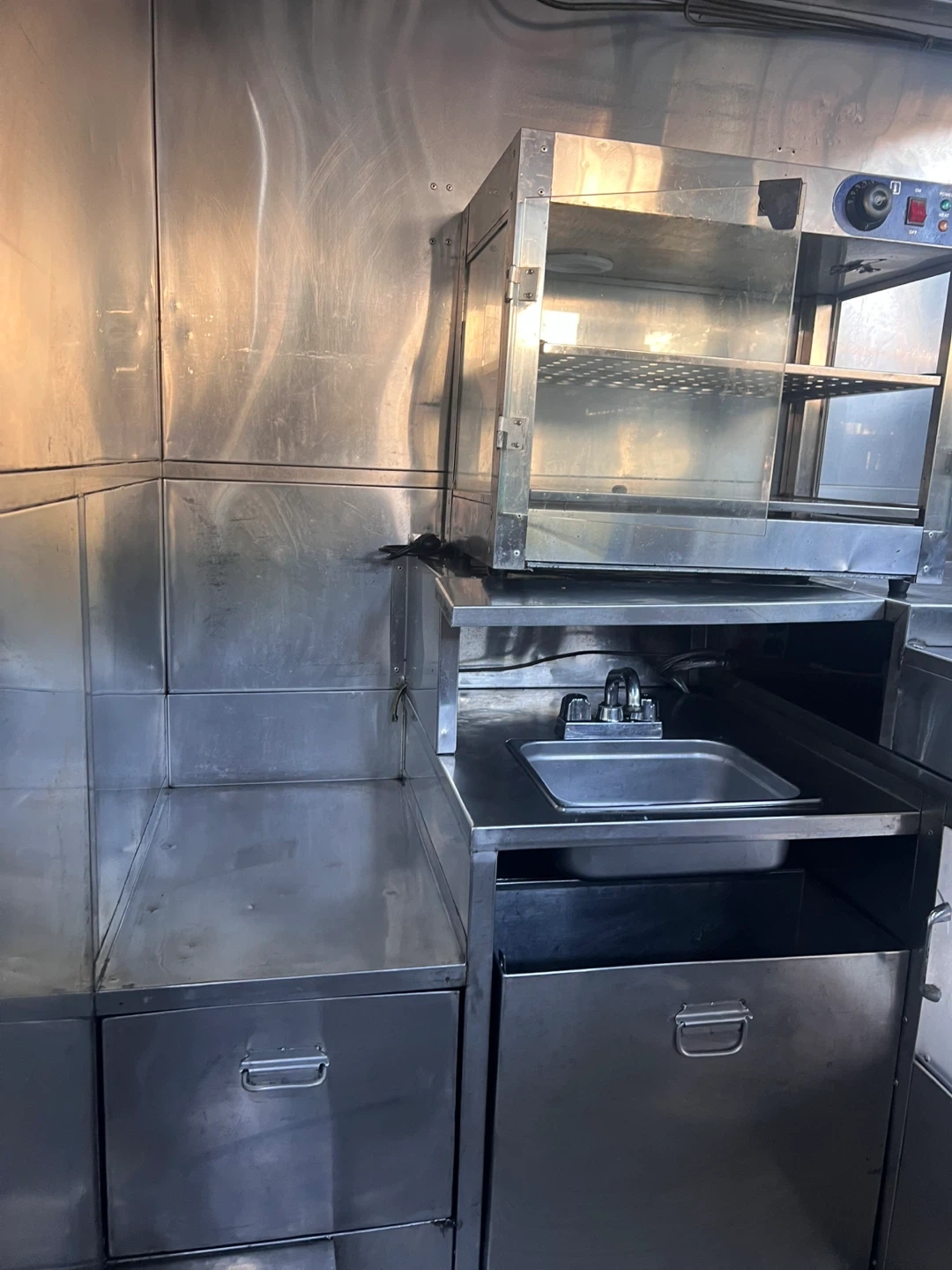 This well-maintained 2013 kitchen food trailer offers a compact 5x8 ft workspace outfitted with essential cooking and storage equipment. It has been kept in good condition and is ready for a new operator to start serving right away. Key highlights include: - Concession window with awning - Stainless steel wall covers & diamond plate flooring - Refrigerator, stovetop, fryer, steam table & warmer - Exhaust hood with fan and fire extinguisher - Interior & exterior lighting, outlets, propane supply - Hand-washing sink and gray water tank While the trailer does not have air conditioning and the buyer must remove existing logos, its durable build and versatile setup make it a strong investment for a food business ! Vehicle Features Concession Window(s) Removable Trailer Hitch Cabinets • Stainless Steel Wall Covers • Awning • Diamond Plated Aluminum Flooring Equipment Power Supply • Propane Tank(s): 4 Refrigeration • Refrigerator Cooking Equipment • Stovetop • Fryer(s) • Food Warmer • Steam Table Kitchen Equipment Exhaust Hood Exhaust Fan Fire Extinguisher
