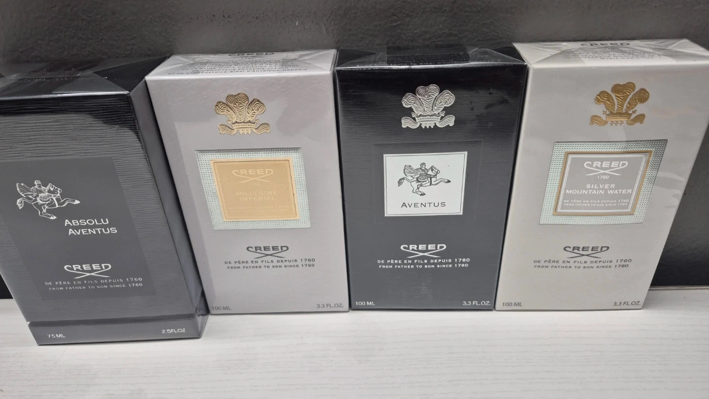 I have a selection of Creed fragrances available: Absolu Aventus (75ml), Millesime Imperial (100ml), Aventus (100ml), and Silver Mountain Water (100ml)