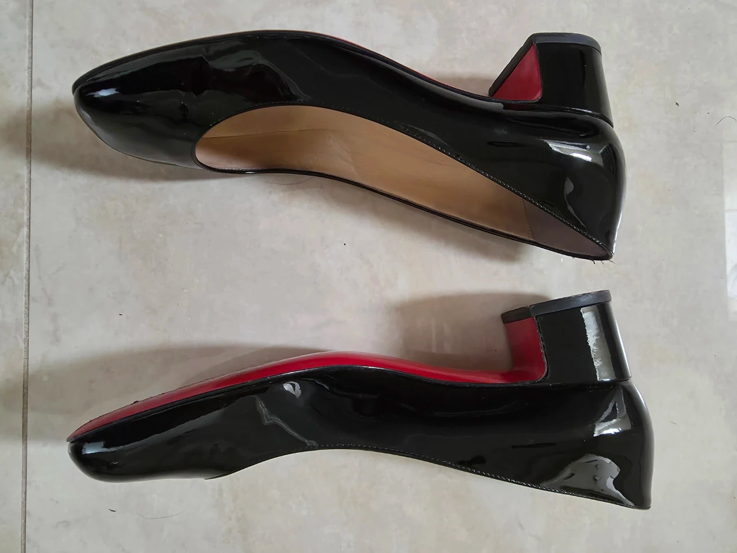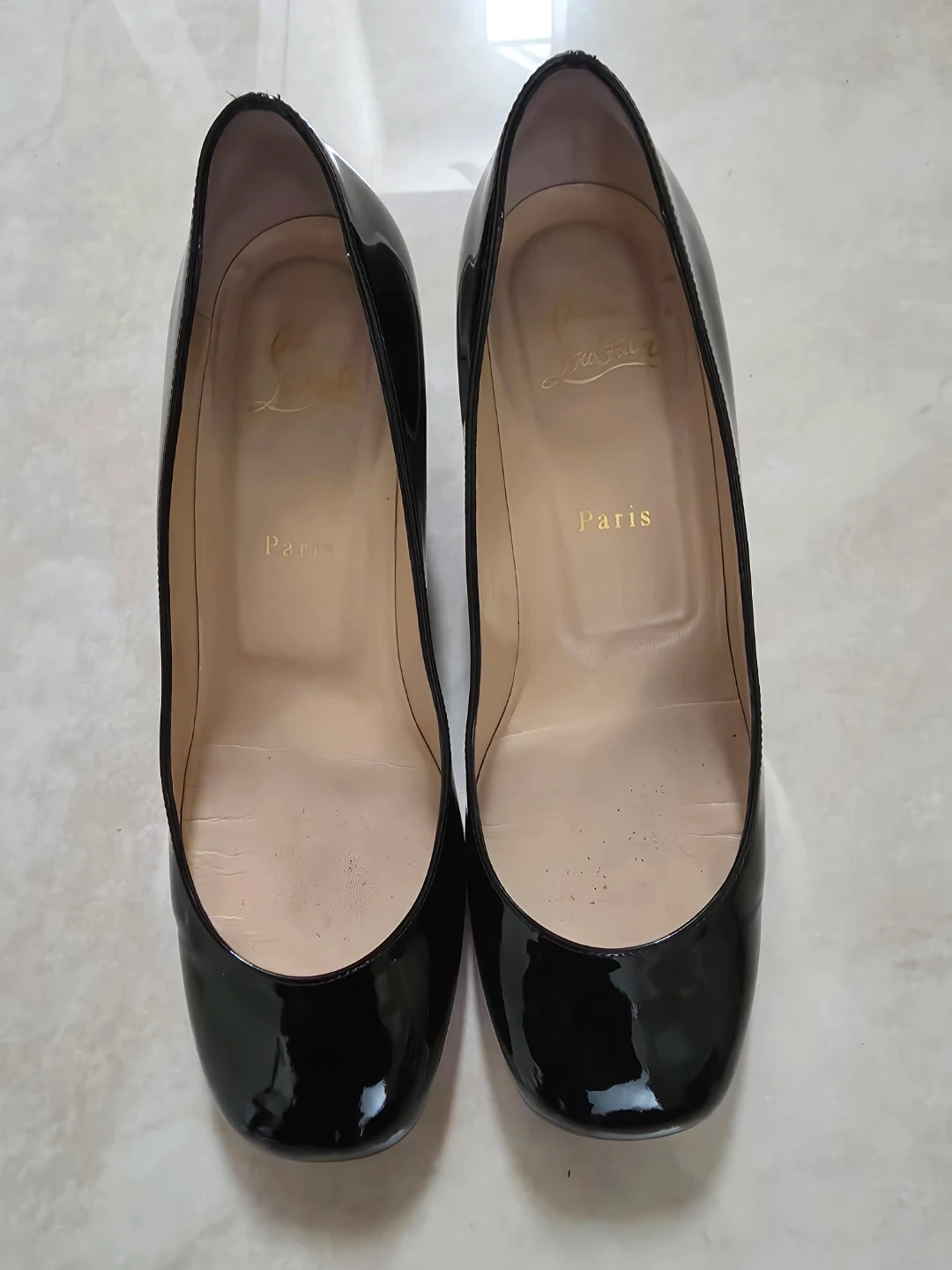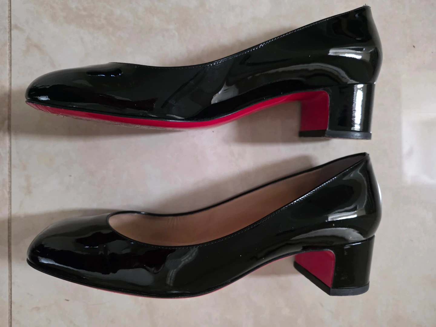 Christian Louboutin patent leather pumps in black. Size 39. Comes with original box. Only worn about 8 times. In EXCELLENT condition, no scuffs at all