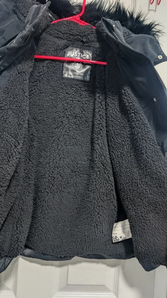 Selling a Justice black puffer jacket in size 12/14. It's in great condition and has a faux fur trim on the hood. The inside is lined with a cozy sherpa material to keep you warm! Wind and waterproof jacket. Cash only plz. Belmont Cragin area.