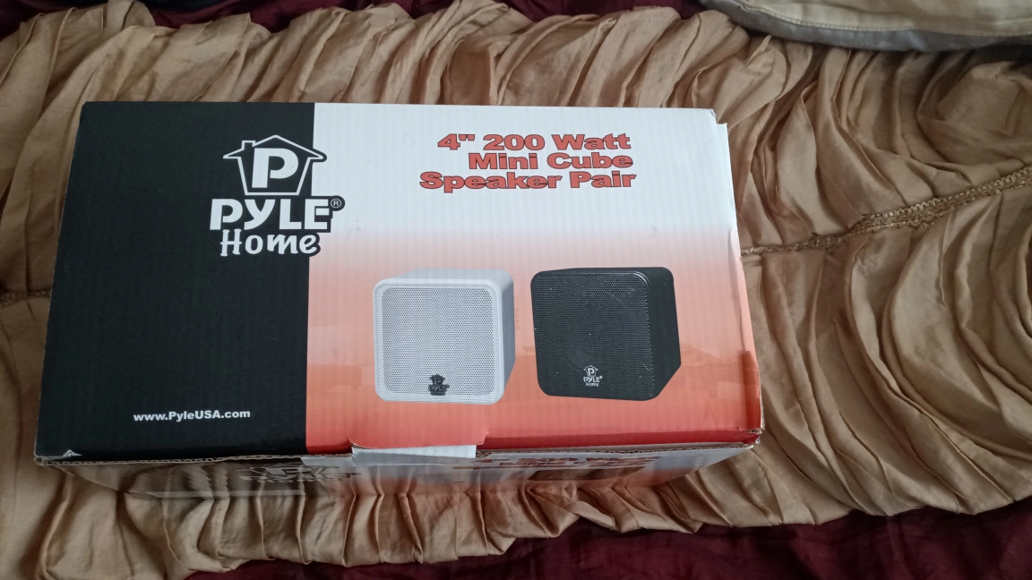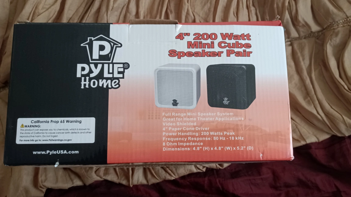 Selling a brand new pair of Pyle Home 4" 200 Watt Mini Cube Speakers! They're still in the original packaging and have never been used. Key features: - Full range mini speaker system - Video shielded - 4" paper cone driver - Power handling: 200 Watts peak - Frequency response: 80 Hz - 18 kHz - 8 Ohm impedance - Dimensions: 4.8" (H) x 4.8" (W) x 5.2" (D) Perfect for home theater applications!