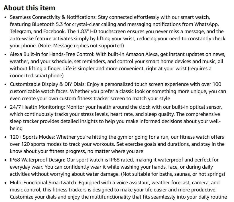 Seamless Connectivity & Notifications: Stay connected effortlessly with our smart watch, featuring Bluetooth 5.3 for crystal-clear calling and messaging notifications from WhatsApp, Telegram, and Facebook. The 1.83" HD touchscreen ensures you never miss a message, and the auto-wake feature activates simply by lifting your wrist, reducing your need to constantly check your phone. (Note: Message replies not supported)