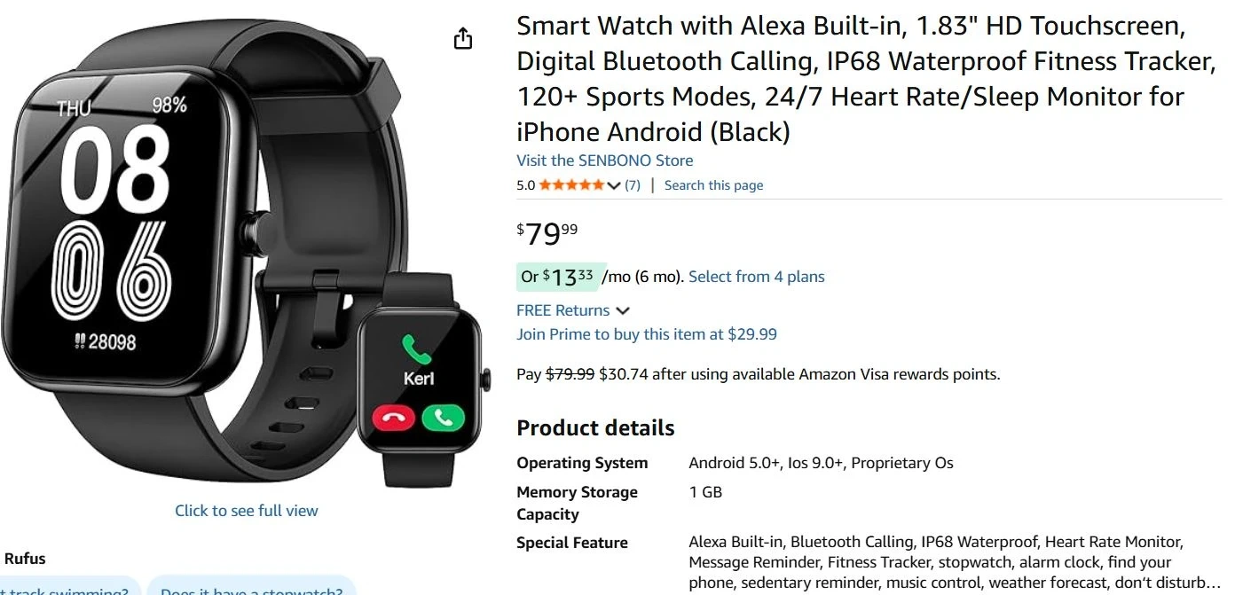 1.83" HD Touchscreen, Digital Bluetooth Calling, IP68 Waterproof Fitness Tracker, 120+ Sports Modes, 24/7 Heart Rate/Sleep Monitor for iPhone Android