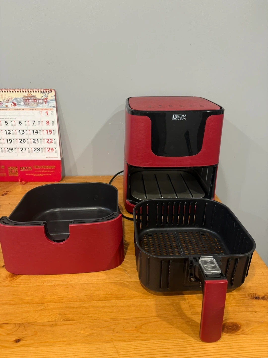 Selling a red Ultima Cosa air fryer! It's in great shape and ready for a new home. Comes with the basket and tray for all your frying needs.