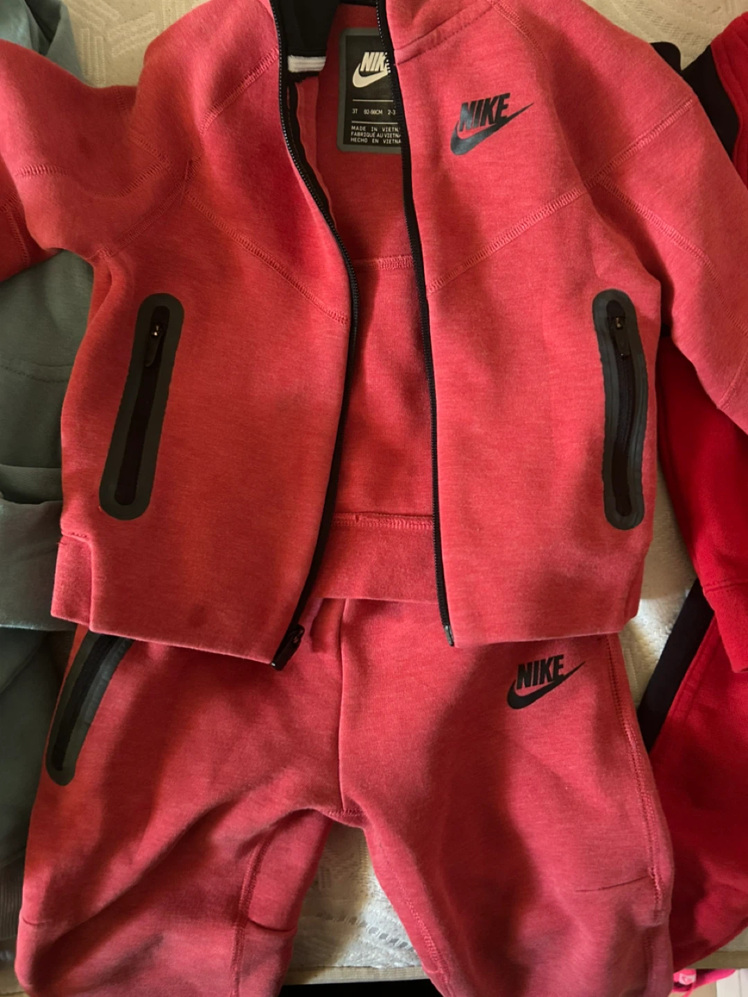 Selling a cute Nike Tech Fleece tracksuit in size 2-3T! The set is a vibrant red color and includes both the jacket and pants. Perfect for keeping your little one comfy and stylish!