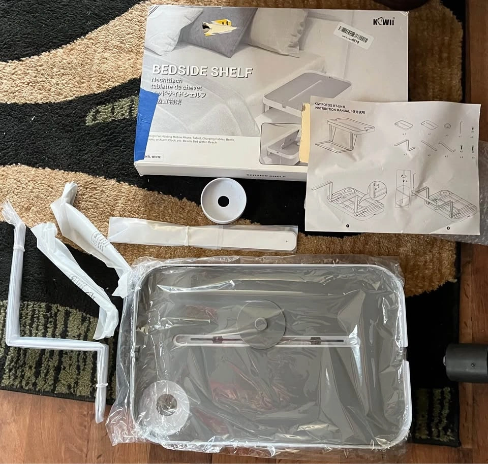 New bedside shelf with built-in cupholder, designed for holding mobile phone, tablet, charging cable, cables, books, alarm clock, etc. Easy to install, fits under mattress. Pick up only in Lockport, cash only.
