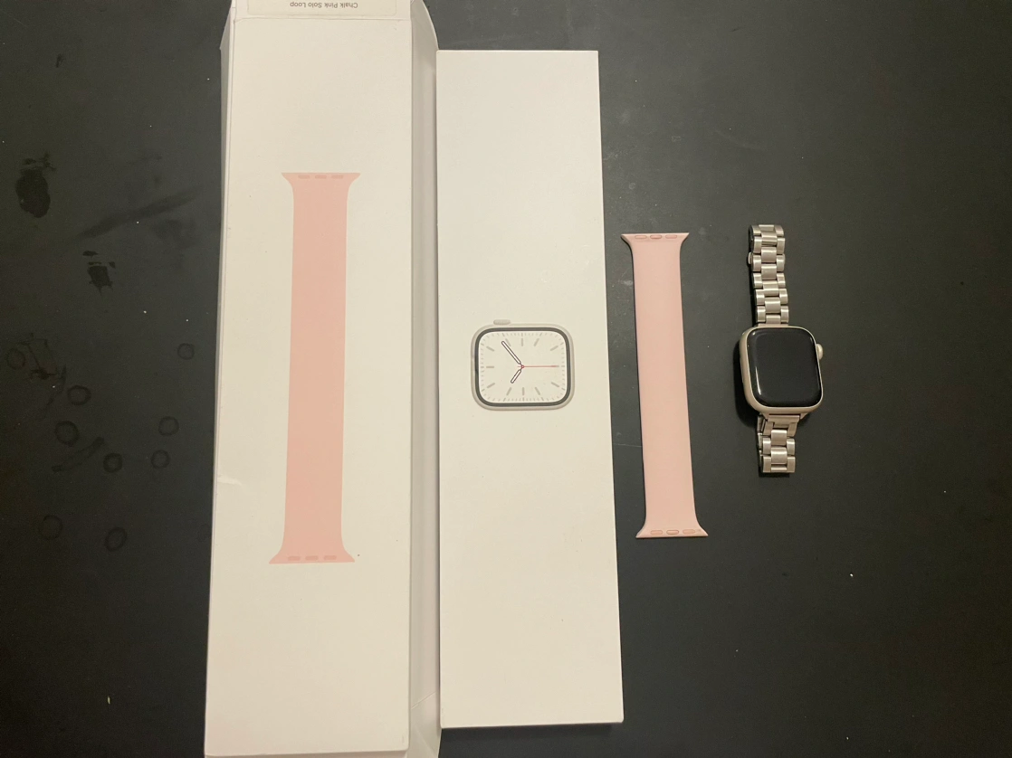 41 mm, original pink strap and metal strap (separately purchased) are included
