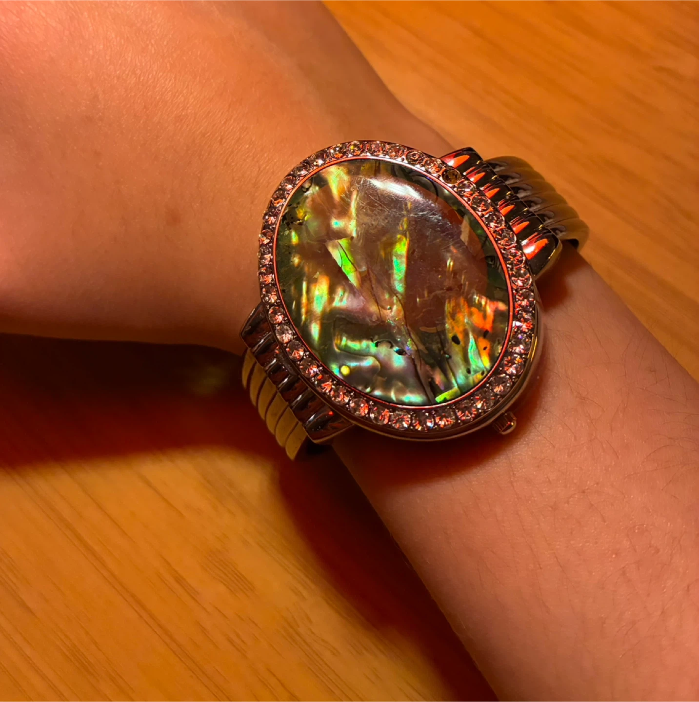 Women's Oval Mother of Pearl Watch with Rhinestone Bezel