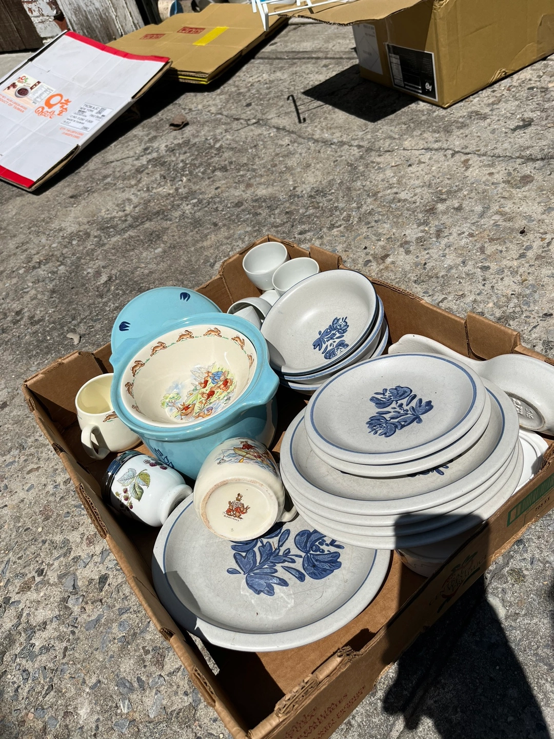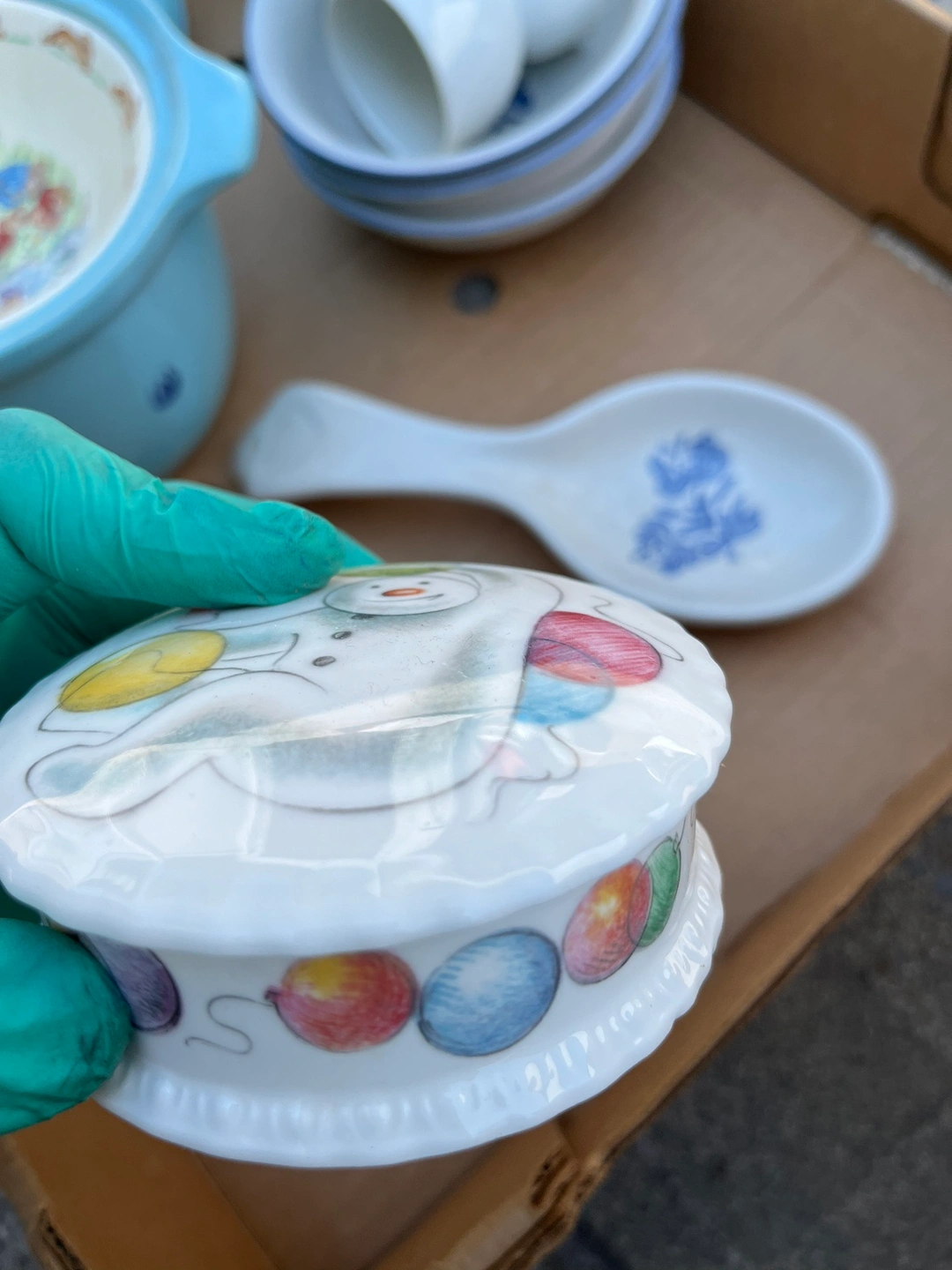 Vintage, good for collectors or everyday use or gifts for old people. Can be sold as a whole or by piece. 21 pieces in total. 10 piece from pfaltzgraff(made in Germany), 1 piece from royal doulton(the snowman gift collection) (lid included), 1 piece from bake oven(lid included), 4 pieces from bunnyking, 1 piece from royal worchester porcelain (made in England) and a few others. Message me for price and info. Negotiable. I can deliver it to queens manhattan or Brooklyn. No lead included