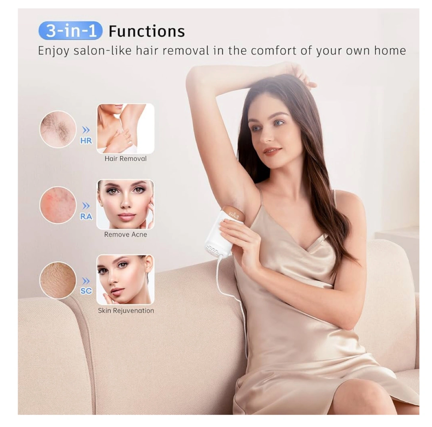 - 3-in-1 Functions: Hair Removal, Remove Acne, Skin Rejuvenation