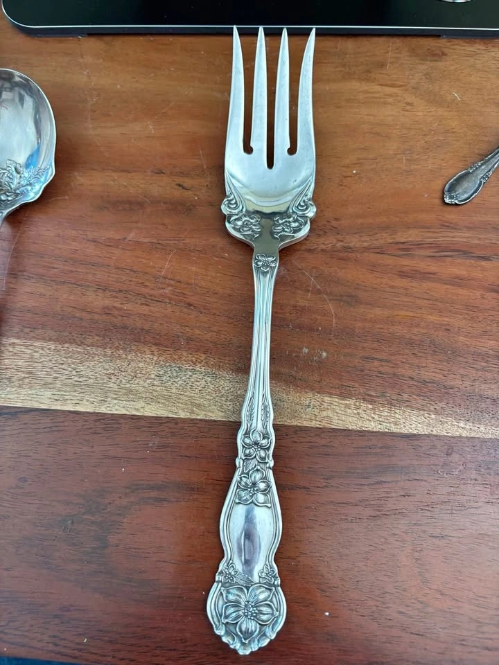 Selling a vintage silver plated fork with a beautiful floral design on the handle. Perfect for adding a touch of elegance to your table setting. Approx 10 inches long. Please see other silverware.