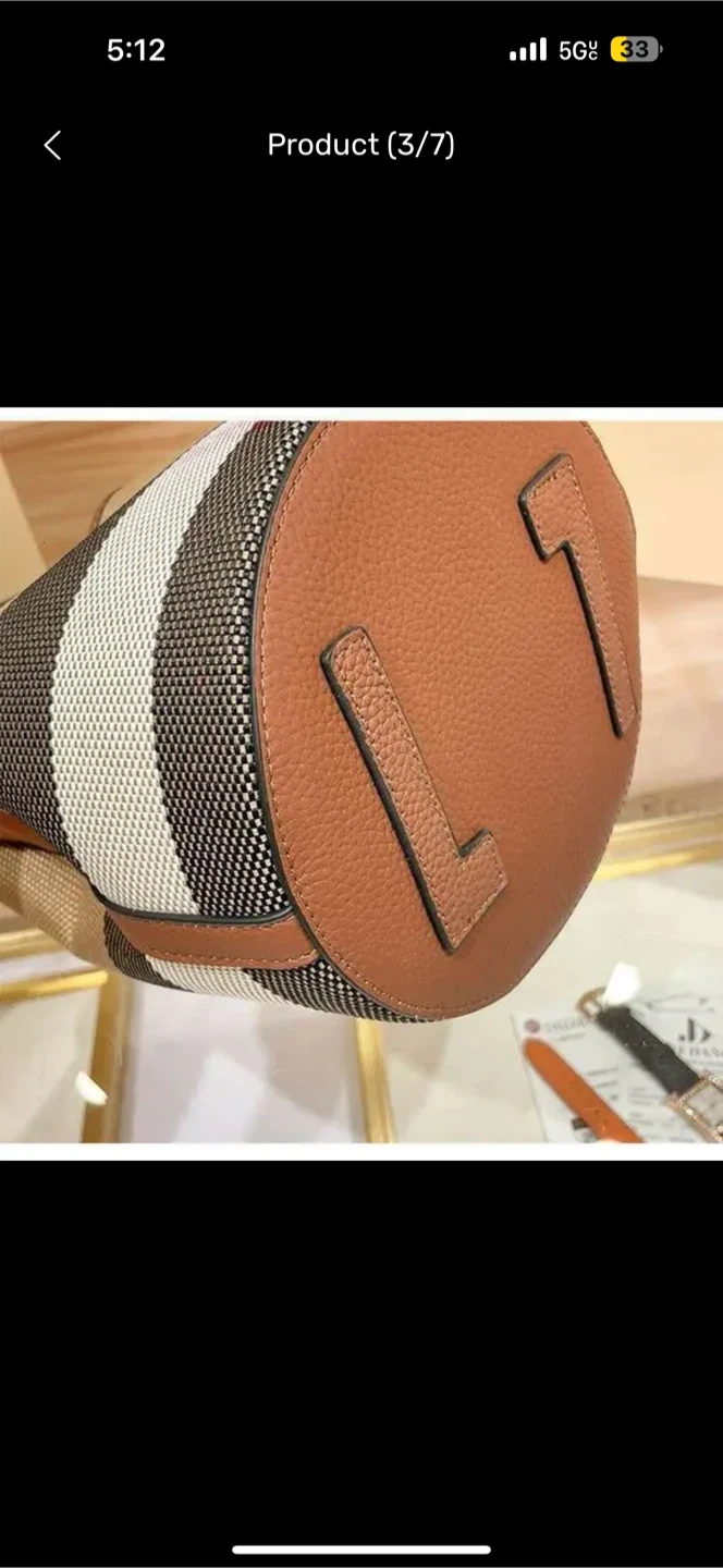 Selling a cute bucket bag! It features the classic Burberry stripe design and comes with an
