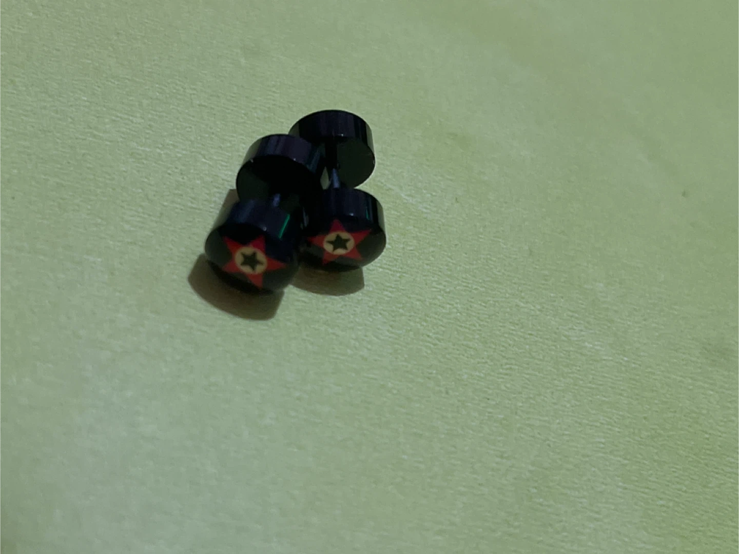 This is a pair of black ear gauges with a red star design. They're made of metal and include a silver-tone post. These gauge earrings are suitable for stretched ear piercings.