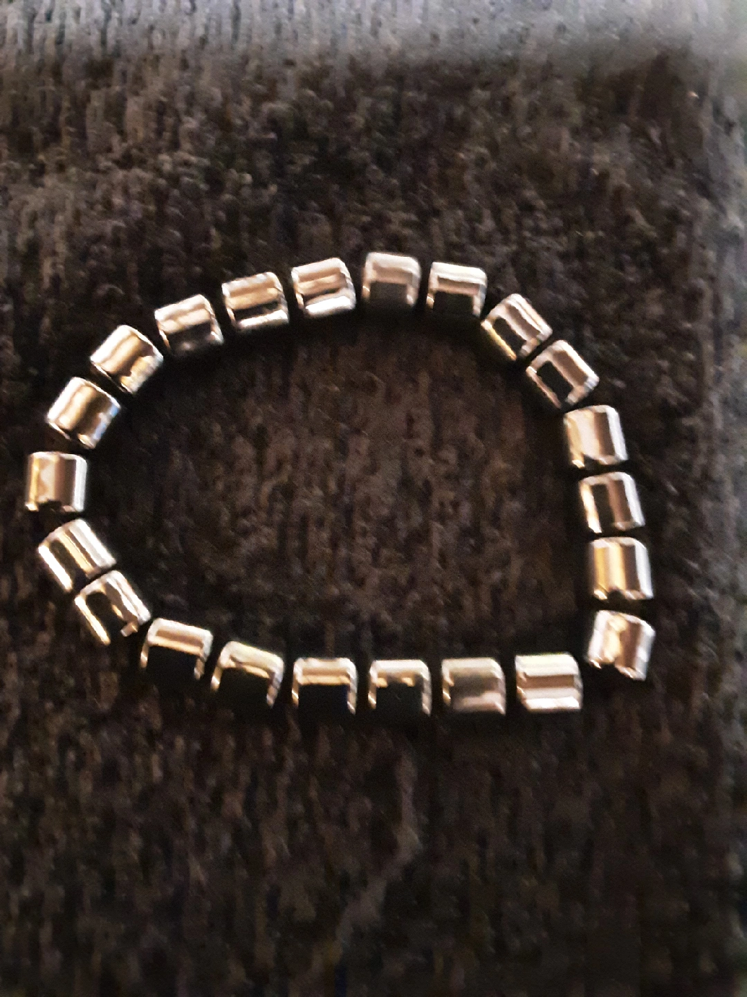 Selling a simple silver-tone metal bead bracelet. It's in good condition and ready for a new home!