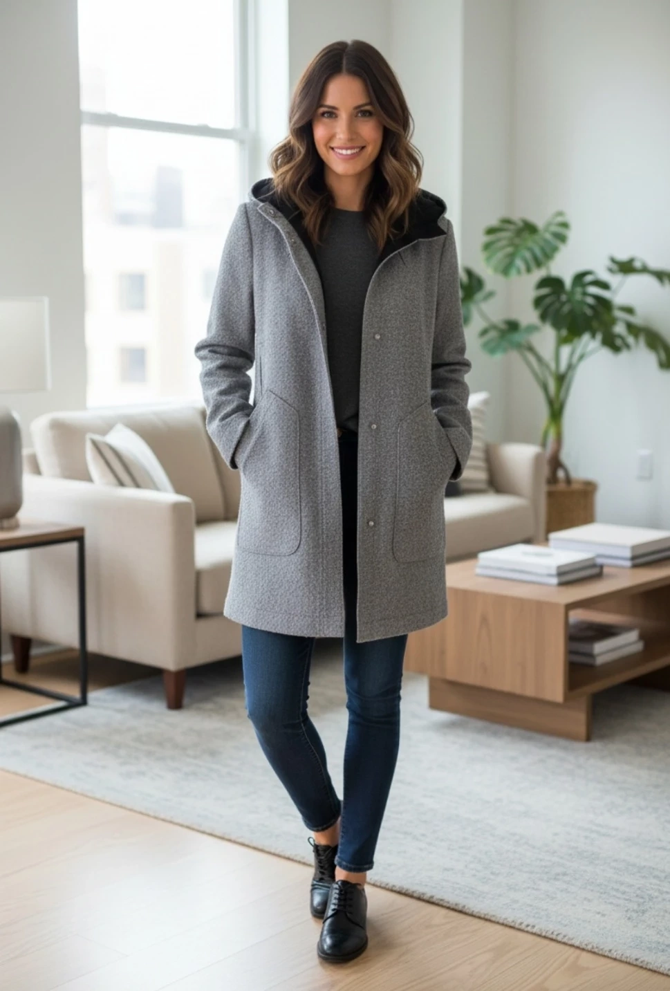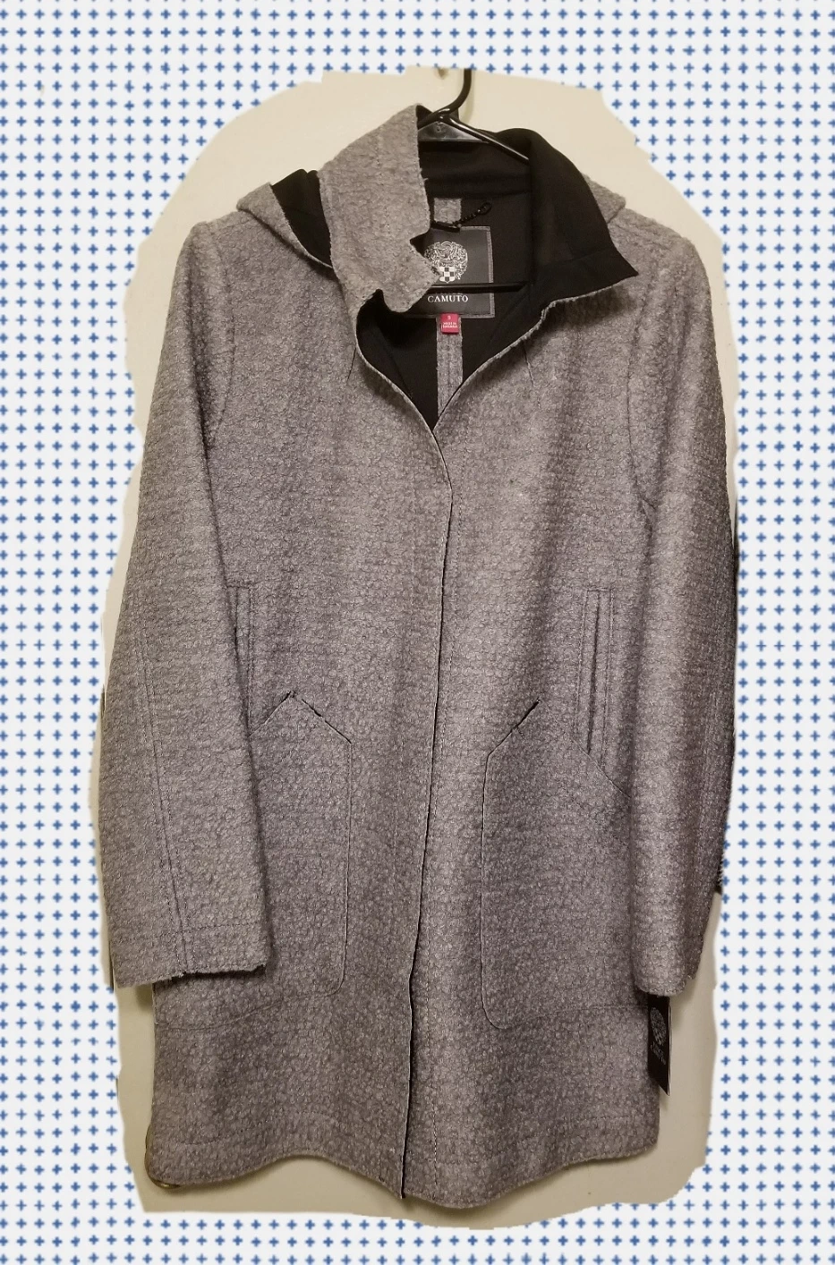 I'm selling a unique Vince Camuto hooded coat in a lovely gray color!