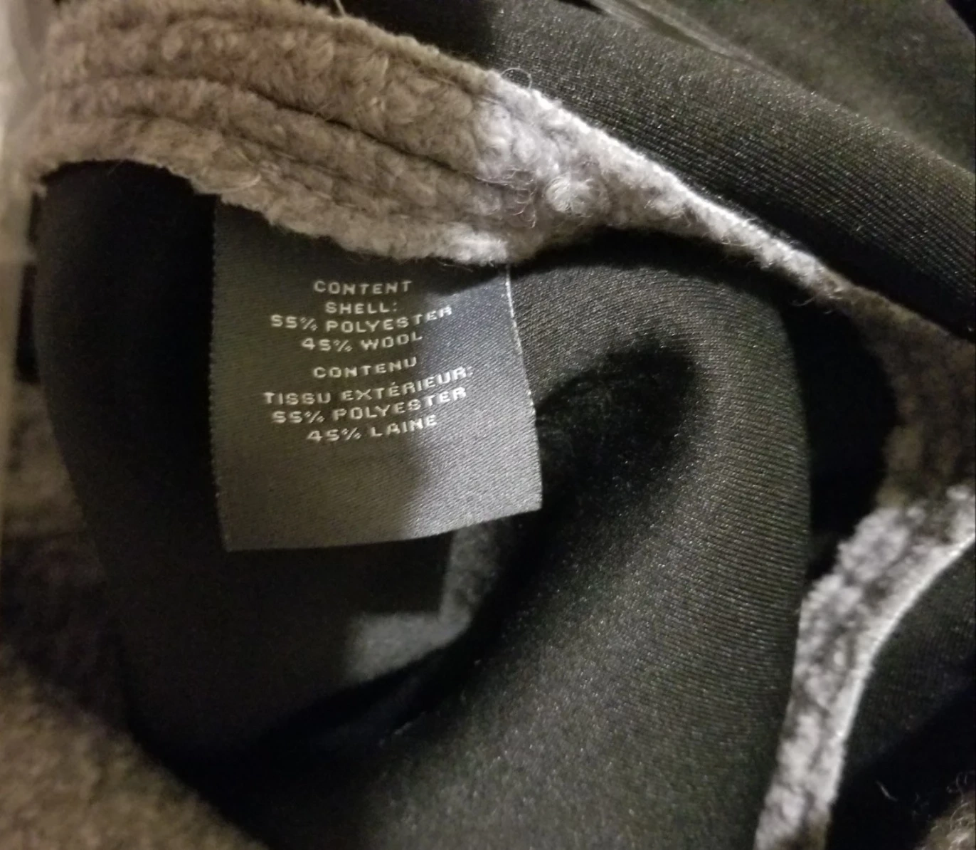 It's made from a blend of 55% polyester and 45% wool, making it both cozy and durable. Perfect for those cooler days!
