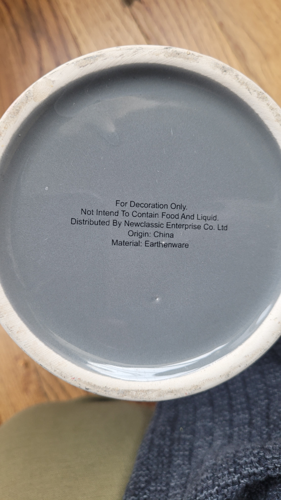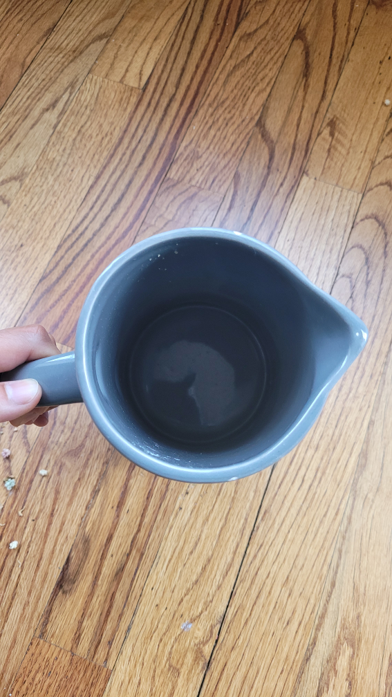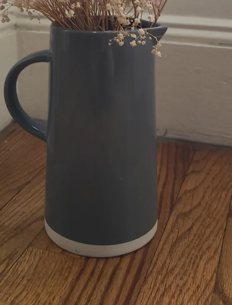 I'm selling a gray pitcher made of earthenware. It's in great condition and perfect for decoration. not intended for food and drink