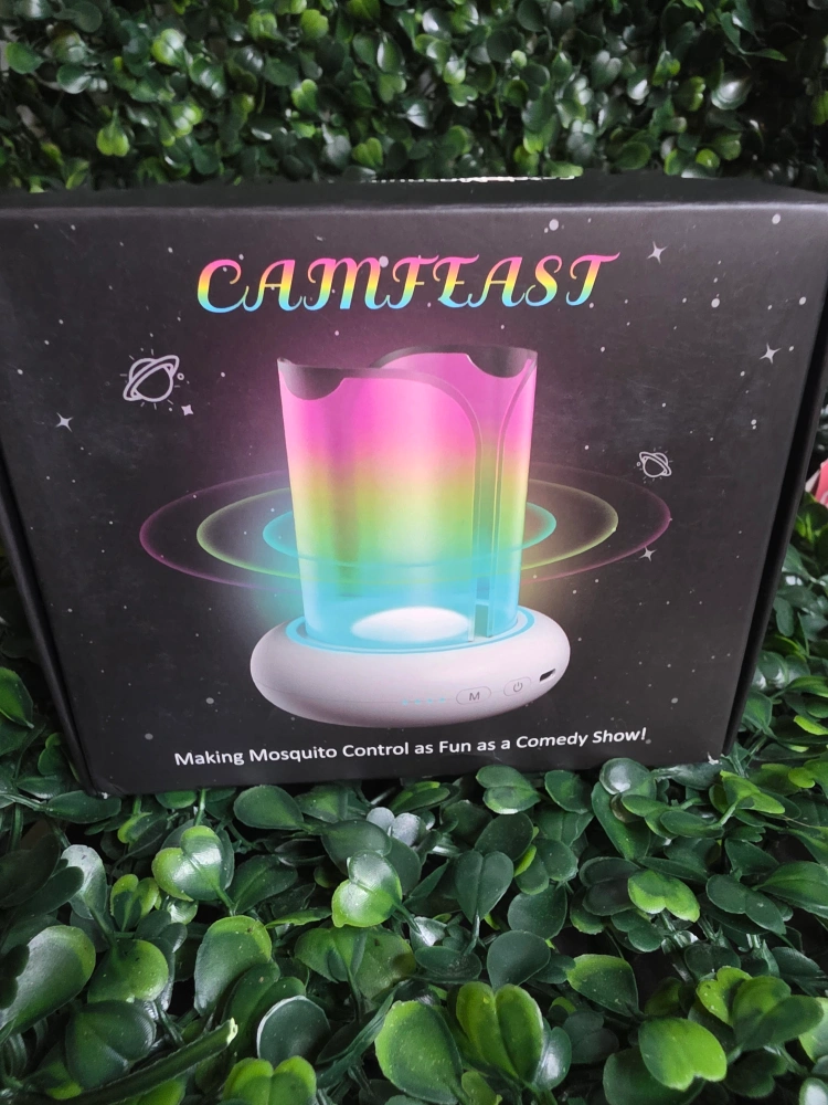 Selling a brand new Camfeast mosquito killer lamp, still in its original box! This lamp is designed to make mosquito control as fun as a comedy show. It features no noise, suspensibility, a rechargeable battery, and 360° attraction. Model number: CMF01