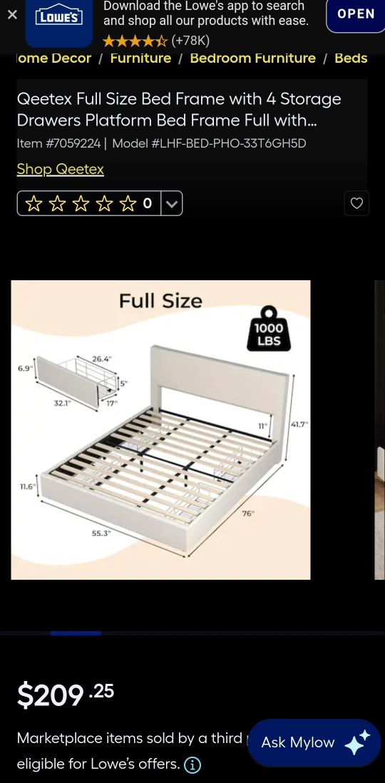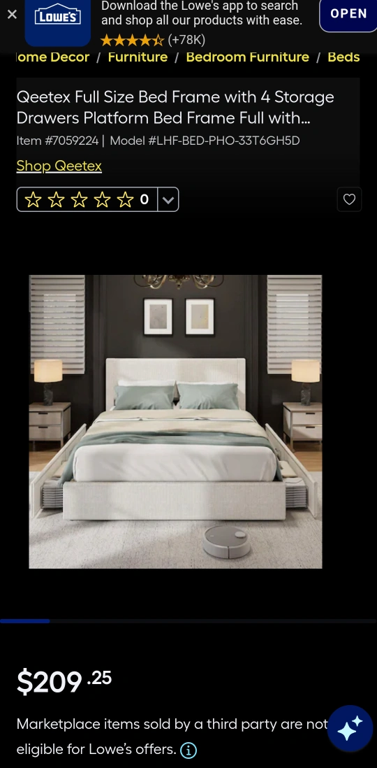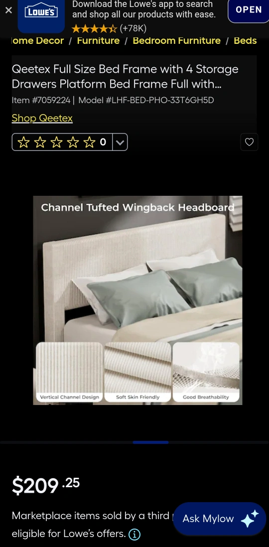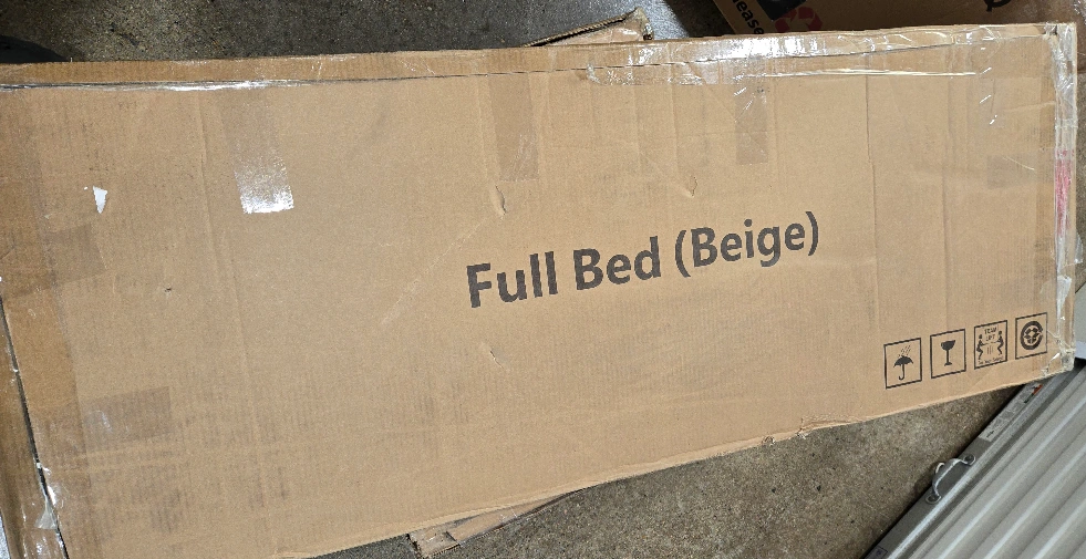 Selling a brand new Qeetex Full Size Bed Frame with 4 Storage Drawers! It features a channel tufted wingback headboard and soft skin friendly material. The bed frame is designed for good breathability. It can support up to 1000 lbs. Originally bought for $209.25