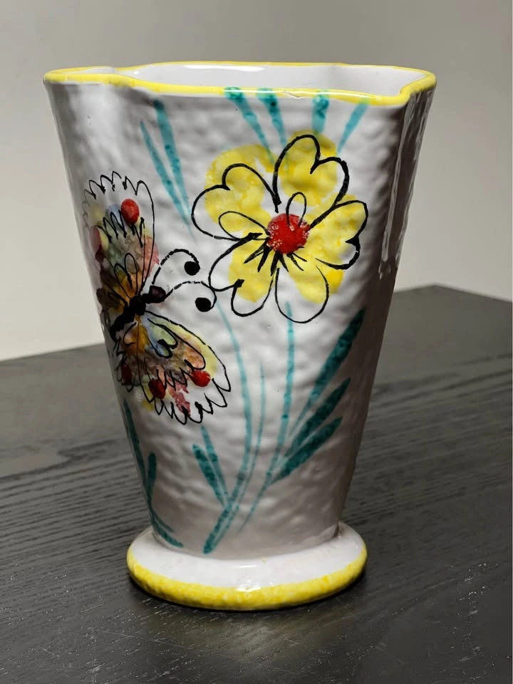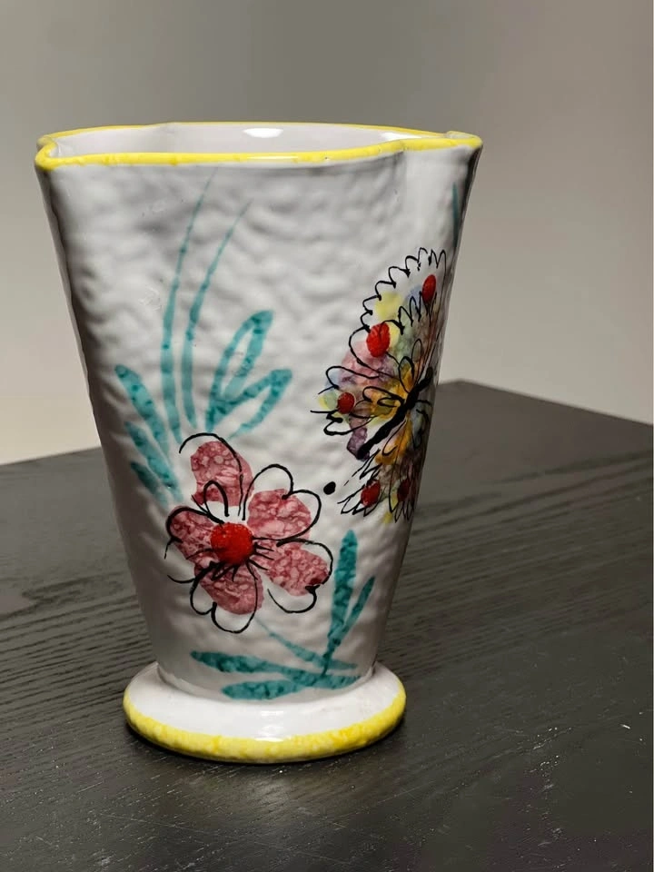 Vintage Italian Pottery Floral Fan Vase