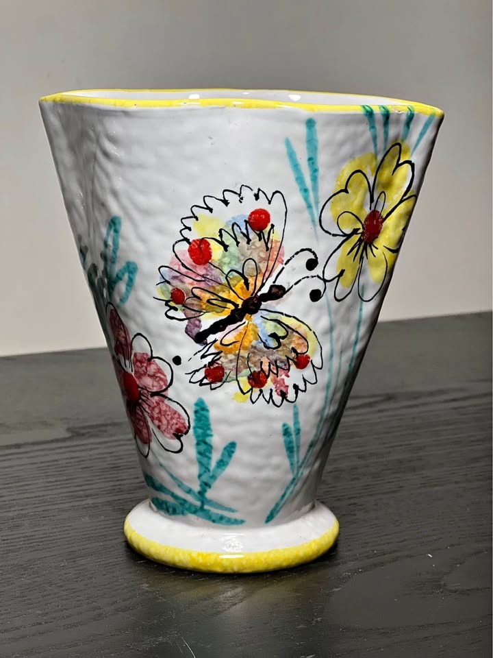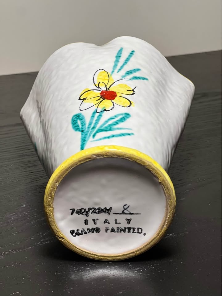 Vintage Italian Pottery Floral Fan Vase