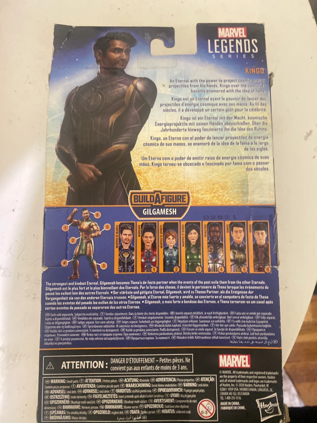 Selling a Marvel Legends Kingo action figure from the Eternals series. The figure is in its original packaging and part of the Build-A-Figure Gilgamesh series.