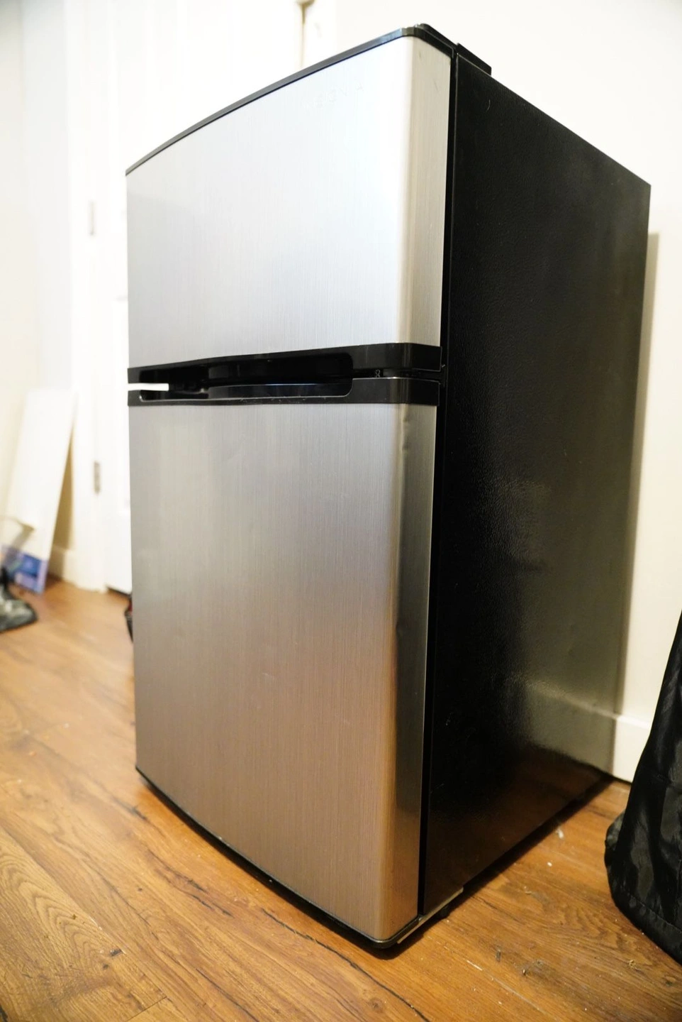 Great condition and works phenomenally! Used one semester, and now collecting dust. Has a cute mini ice tray and a 4-can beverage holder. Pick-up is available across the street from Marquette Park, one block from Kedzie and Marquette Rd. We can also meet at the gas station one block away for your comfortability, or you can pick up at my location. Color: Silver. Finish: Stainless steel.