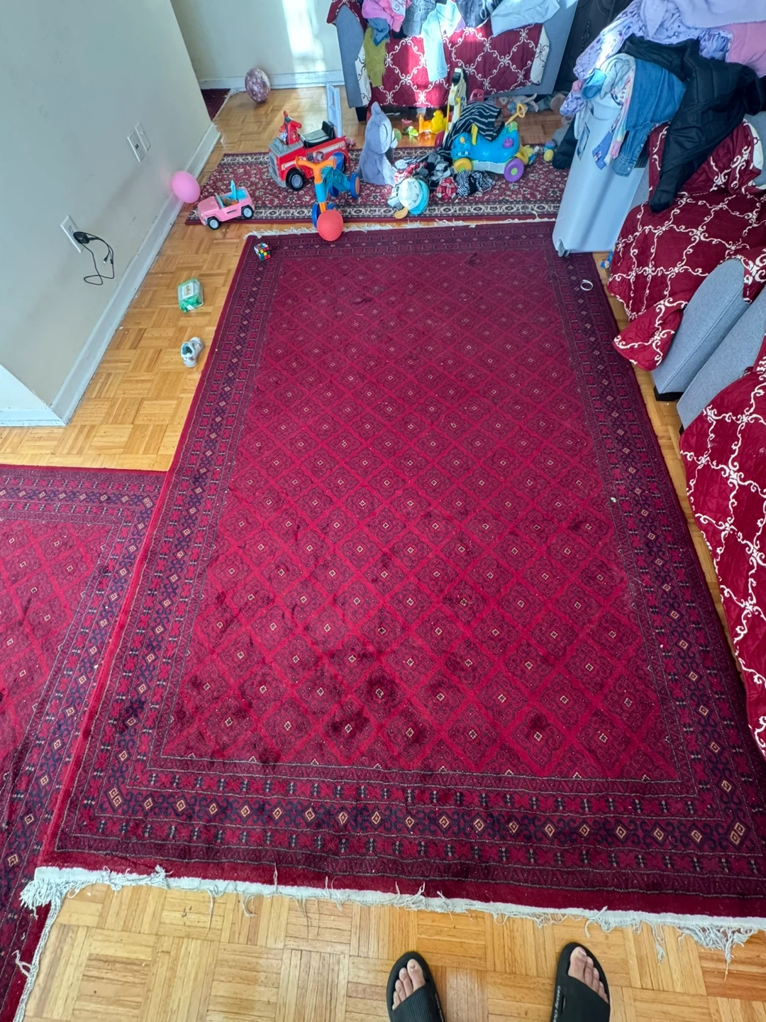 Beautiful red area rug from Gulpesent! This rug is made of 100% acrylic and would be a great addition to any room. It's in good condition and ready for a new home