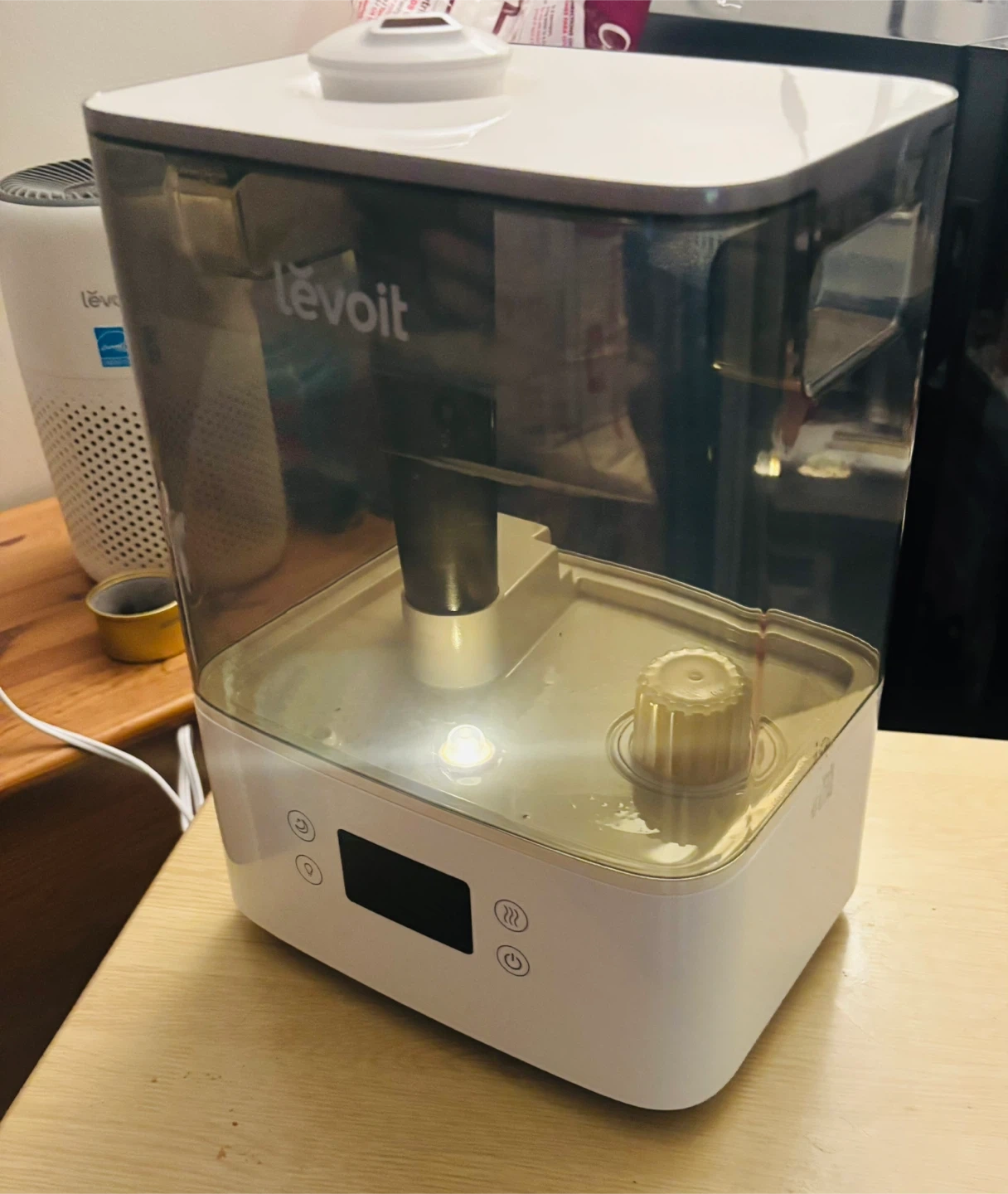 Selling a Levoit humidifier. It's in good condition and ready to use! It features an easy-to-read display and simple controls for customized comfort