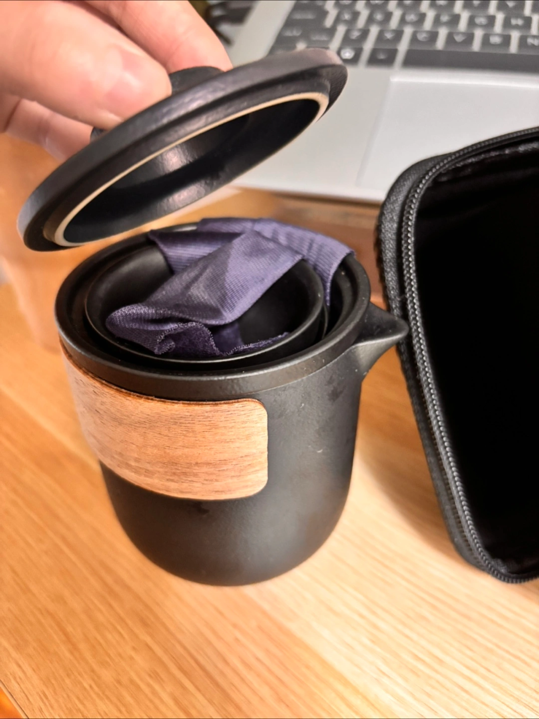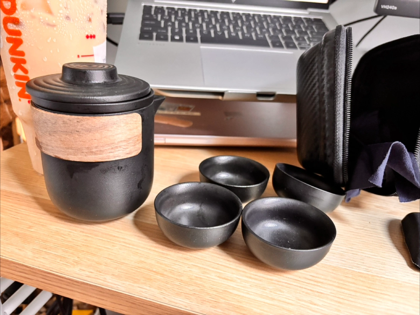 Selling a TBCW Travel Tea Set. This is a portable Chinese Gongfu tea set that comes with a carrying case. It includes 1 pot and 4 cups, perfect for outdoor picnics!