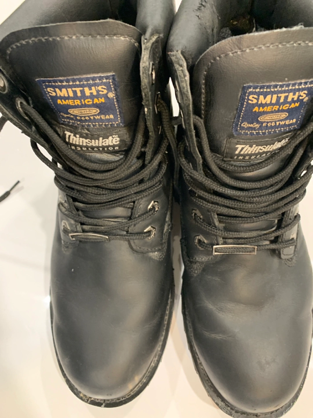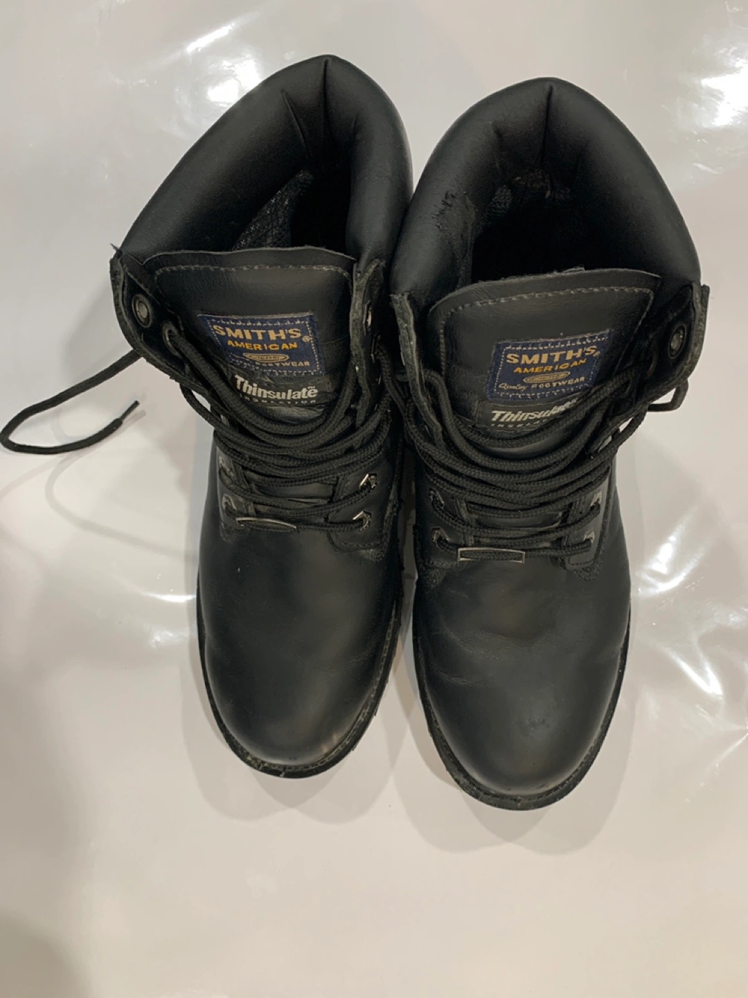 Selling a pair of Smith's American work boots. They're black and look to be in good condition. Perfect for work or outdoor activities!