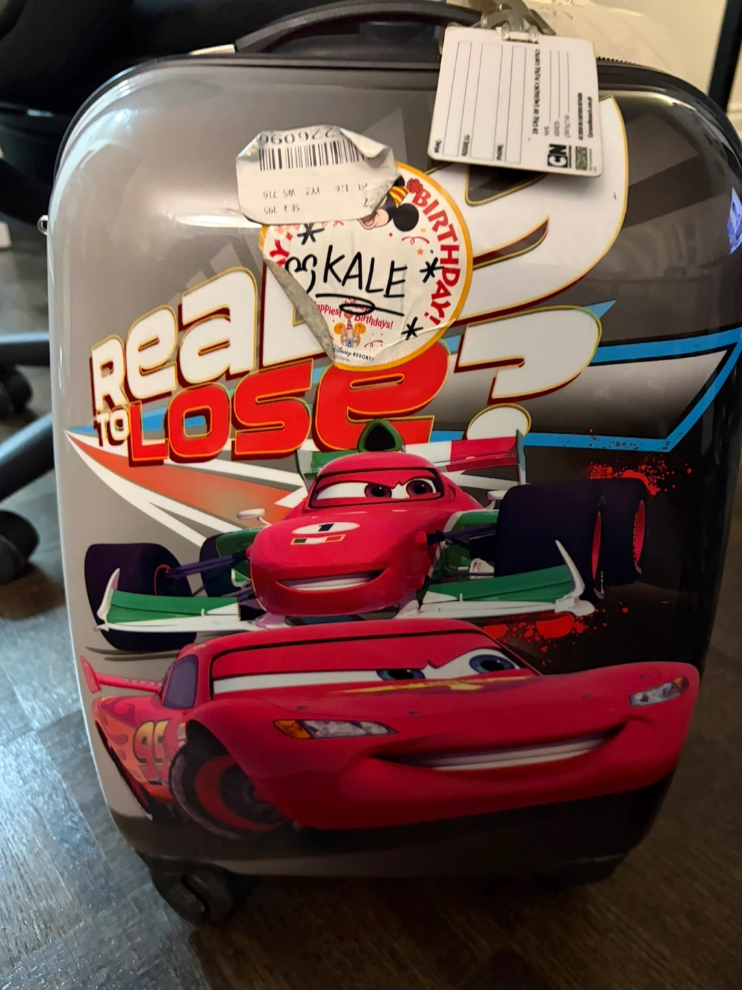 This is a fun rolling suitcase featuring Lightning McQueen from the Cars movie. It's sized perfectly for little travellers! Great for overnight stays or short trips.