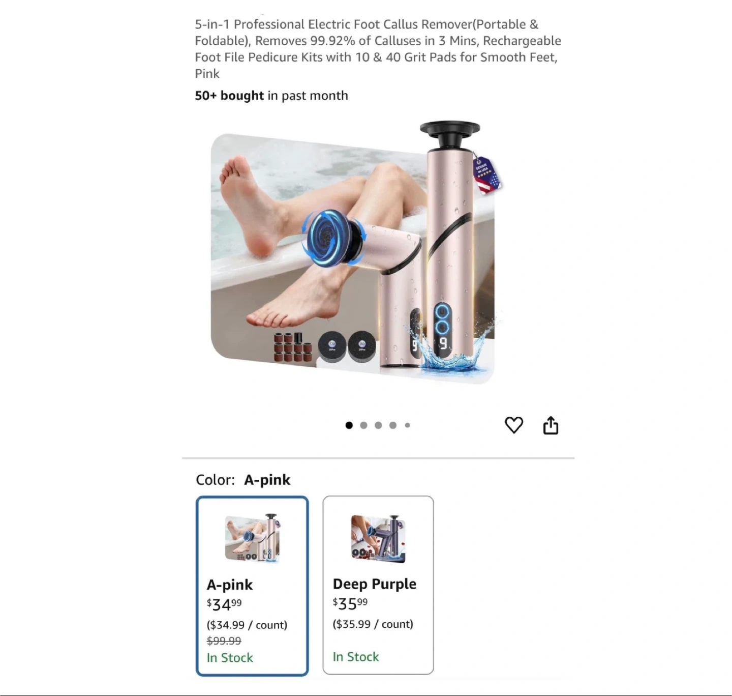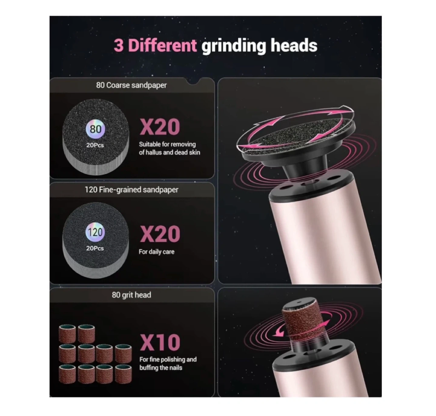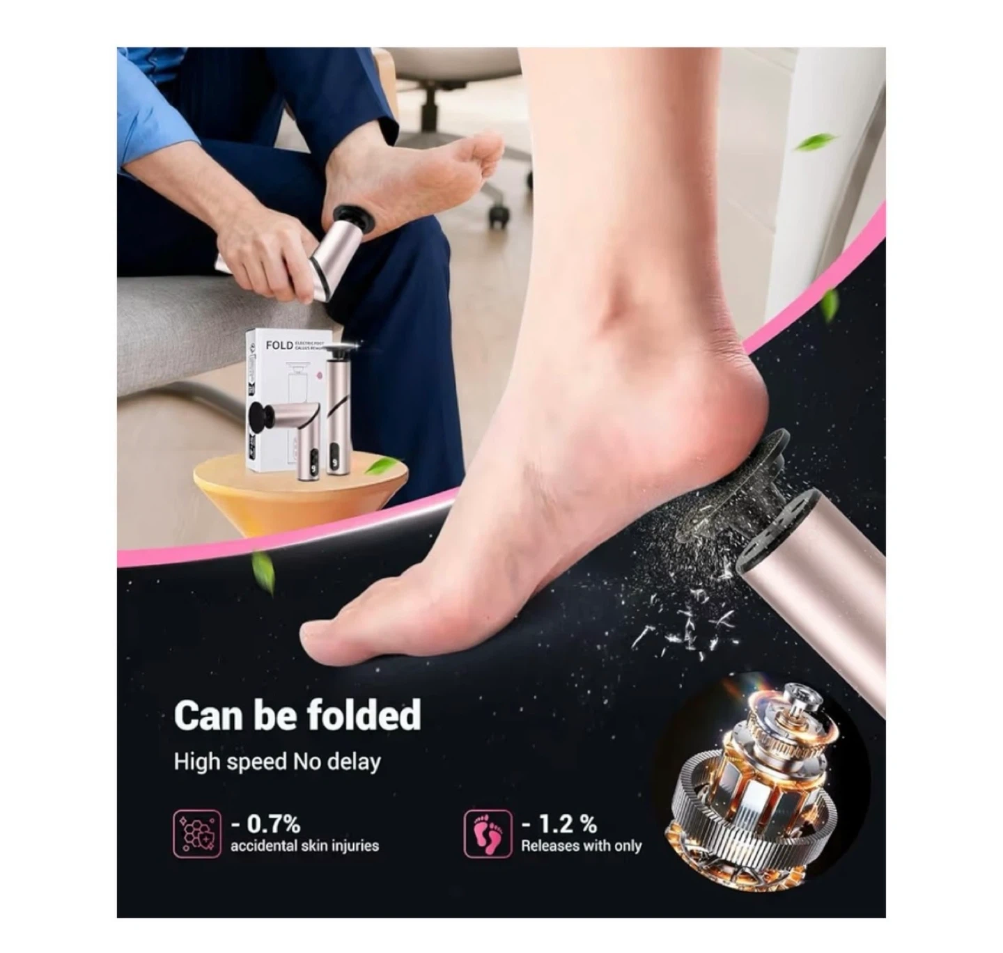 Brand new 5-in-1 Professional Electric Foot Callus Remover(Portable & Foldable), Removes 99.92% of Calluses in 3 Mins, Rechargeable Foot File Pedicure Kits with 10 & 40 Grit Pads for Smooth Feet, Pink