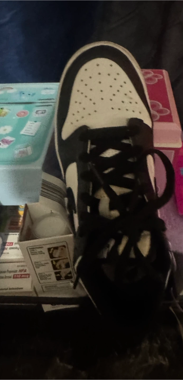 Classic Nike Dunk Low sneakers in a black and white colorway. These shoes feature a leather upper and rubber sole for durability. Low-top design for comfort and style.