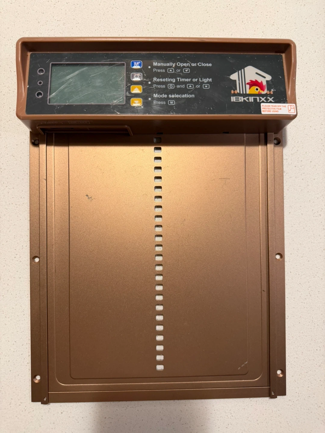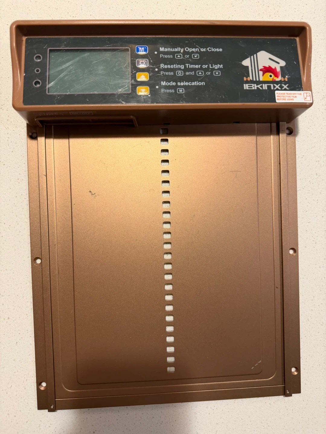 This IBKINXX automatic chicken coop door opener provides convenience and security for your flock. It features manual open/close functionality and can be programmed with timer settings for opening and closing. The unit's durable construction ensures reliable operation.
