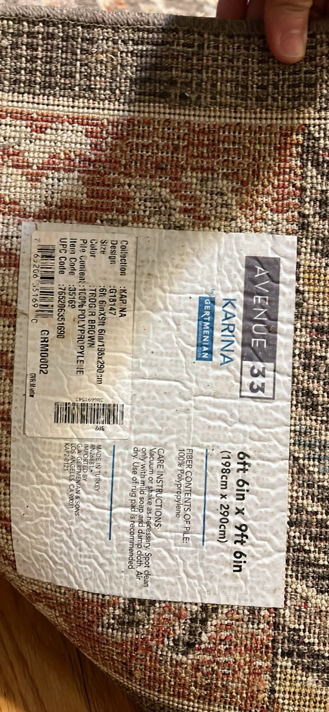 This Safavieh Avenue 33 Karina rug measures 6ft by 9ft. It's made of 100% Polypropylene. The rug is in a brown color.