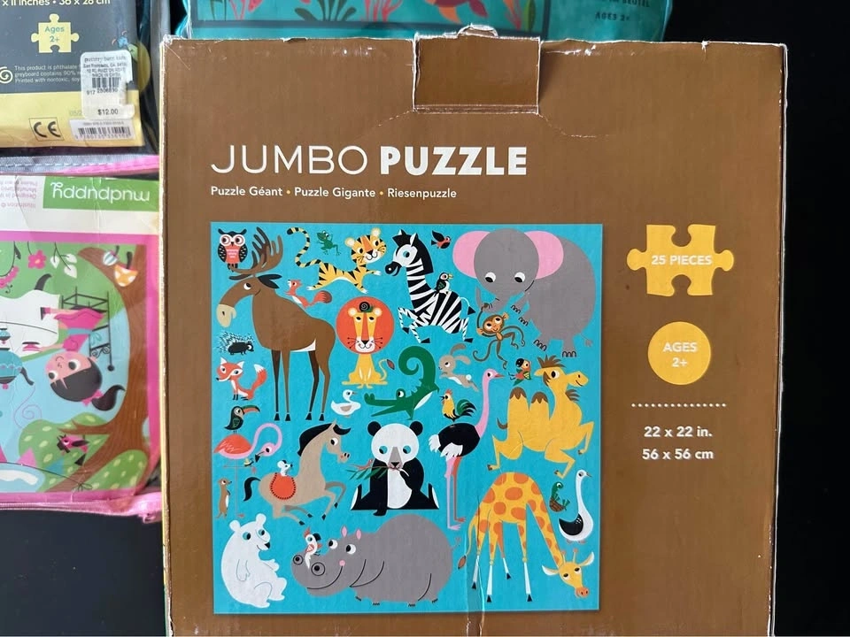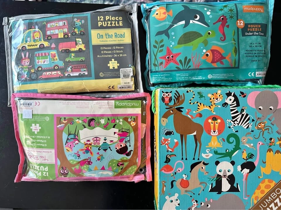 Great condition, recommended for children ages 2 and up! Includes 3 'puzzles on the go' with 12 pieces each, and 1 jumbo puzzle with 25 pieces. Originally sold for $60 together. Pick up on 45th between 8 and 9.
