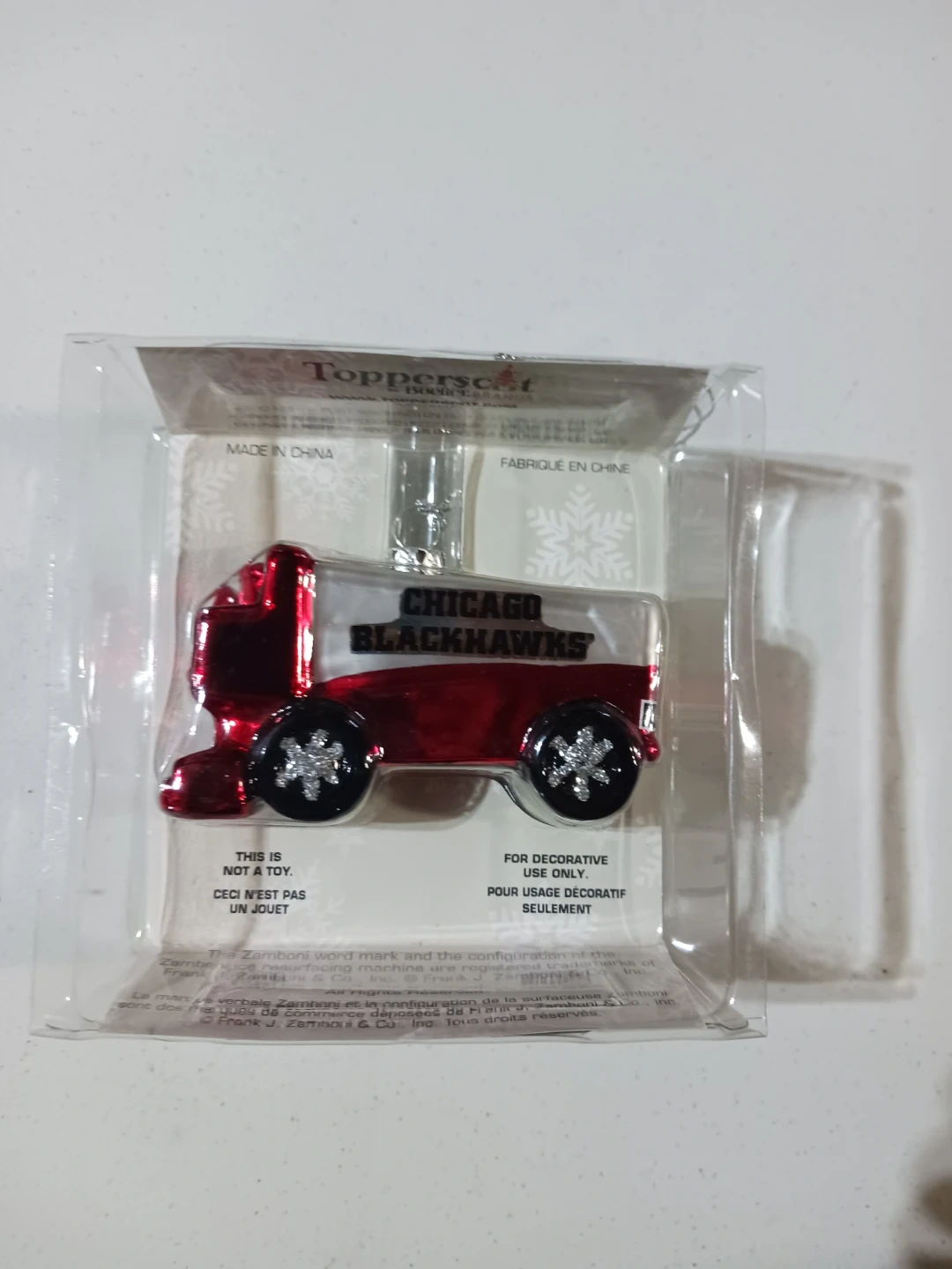 Selling a Chicago Blackhawks decorative truck. This item is for decorative use only and is not a toy. It has a red and silver design.