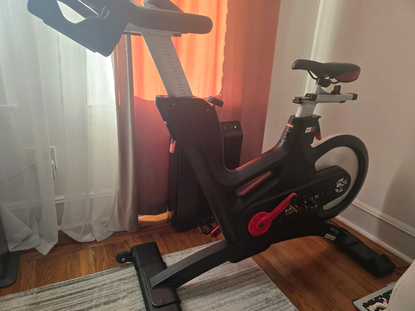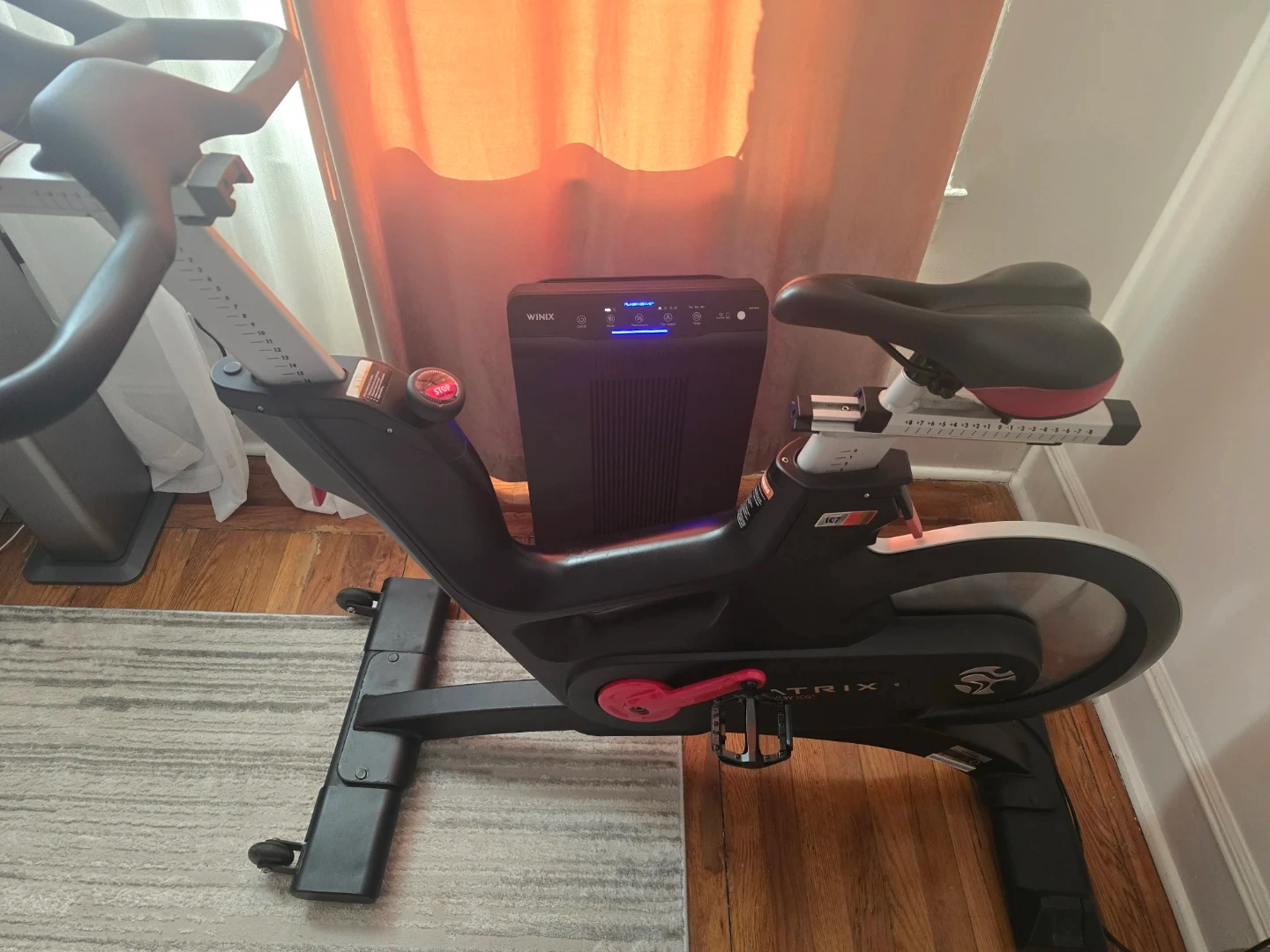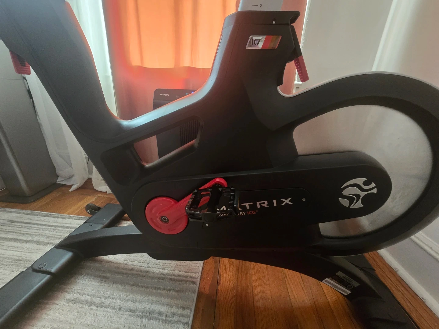 This is a Matrix IC7 indoor cycle bike. It's designed for a smooth and effective workout. Features adjustable seat and handlebars for personalized comfort.