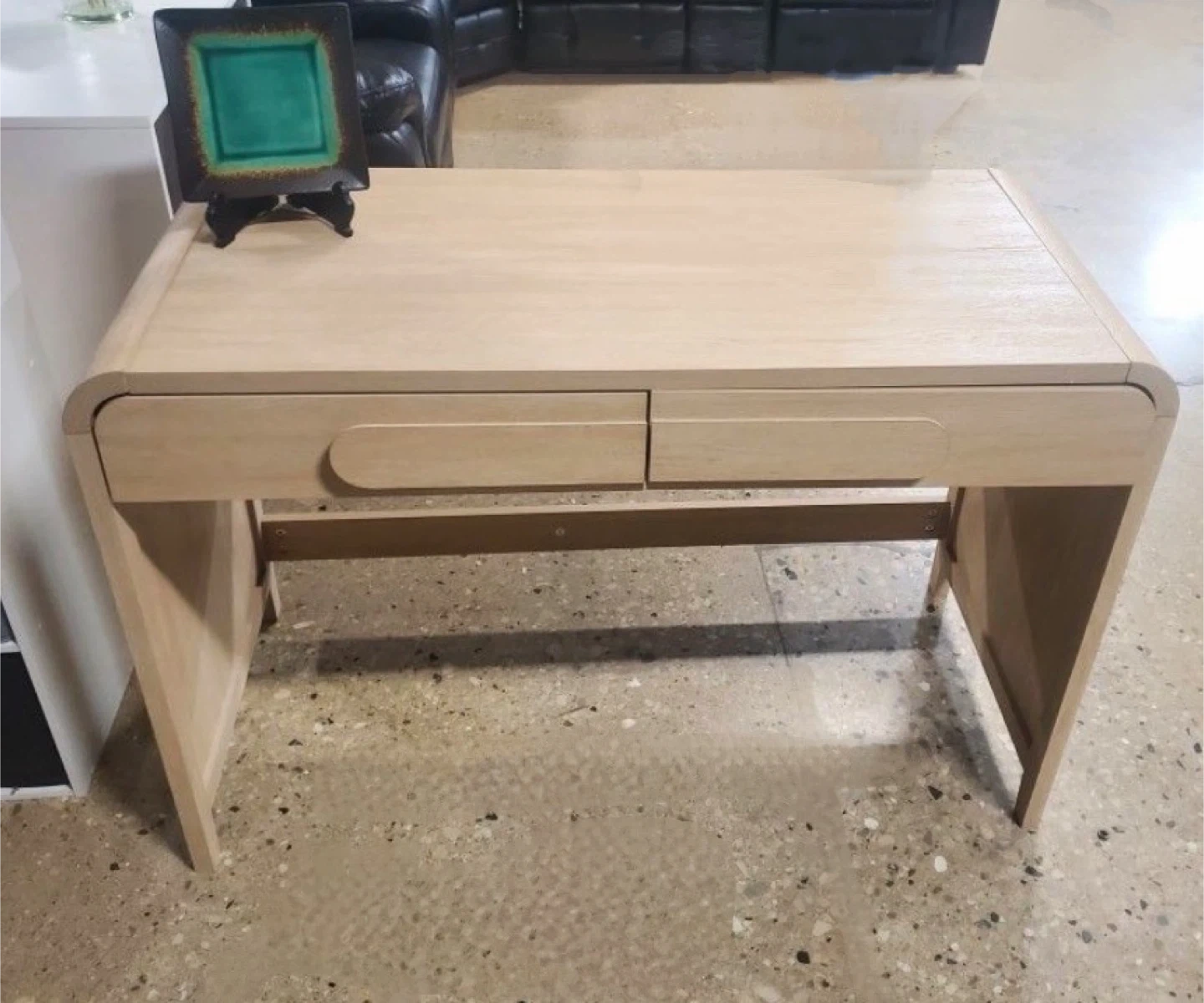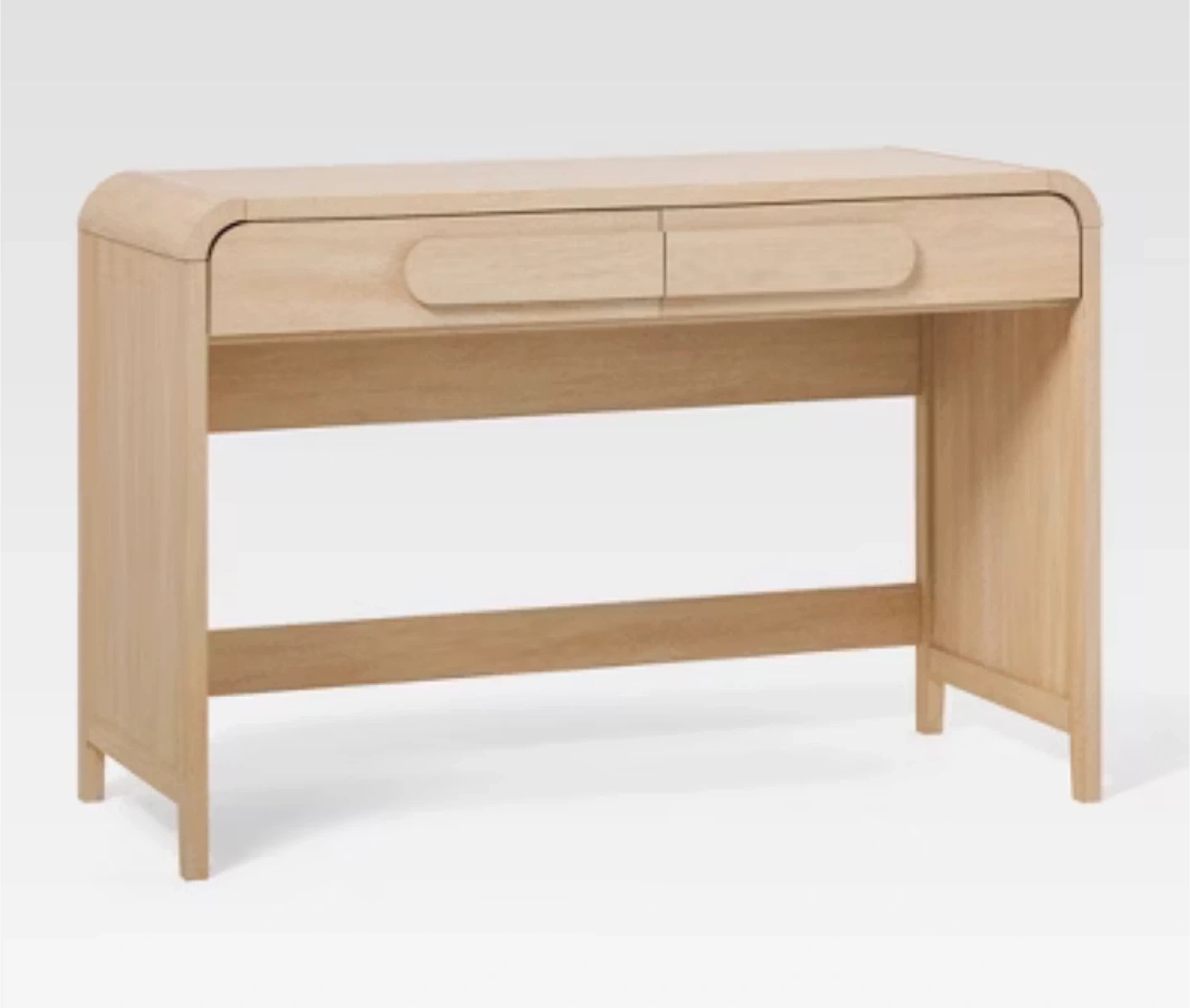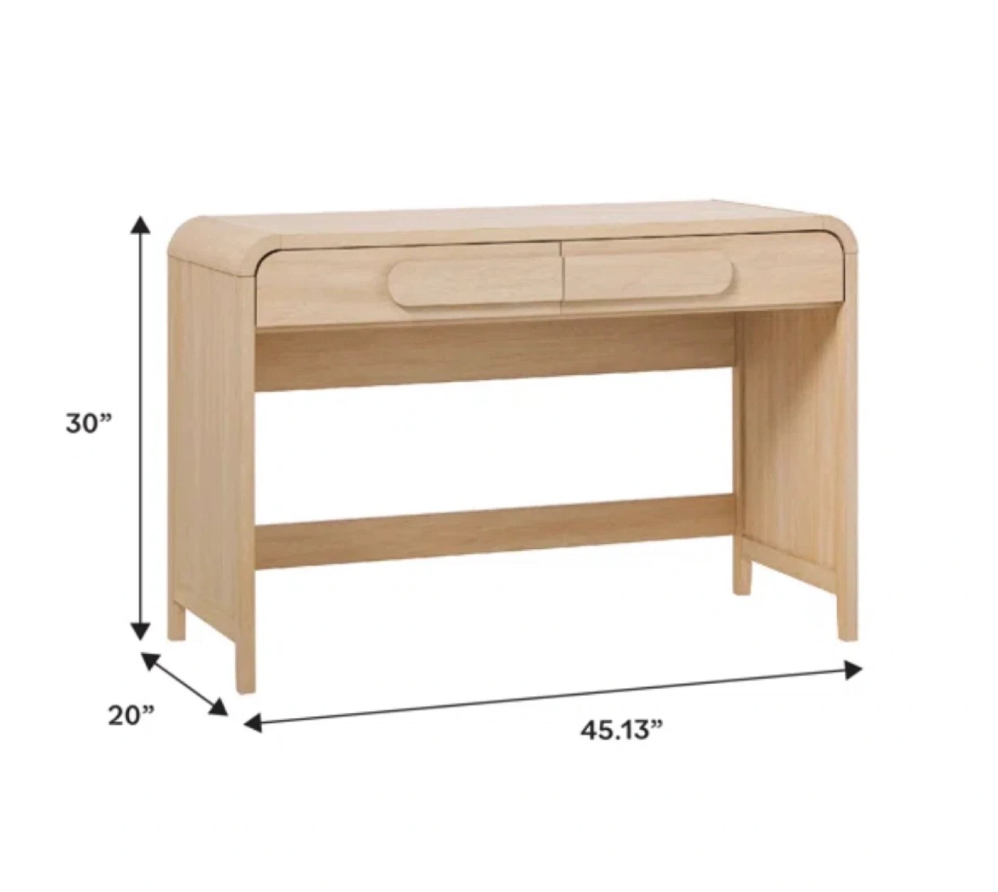New Modern Boho Wood 2-Drawer Desk with Curved Statement Pulls