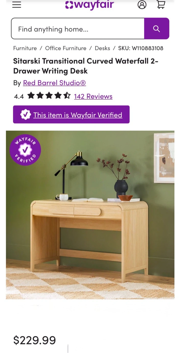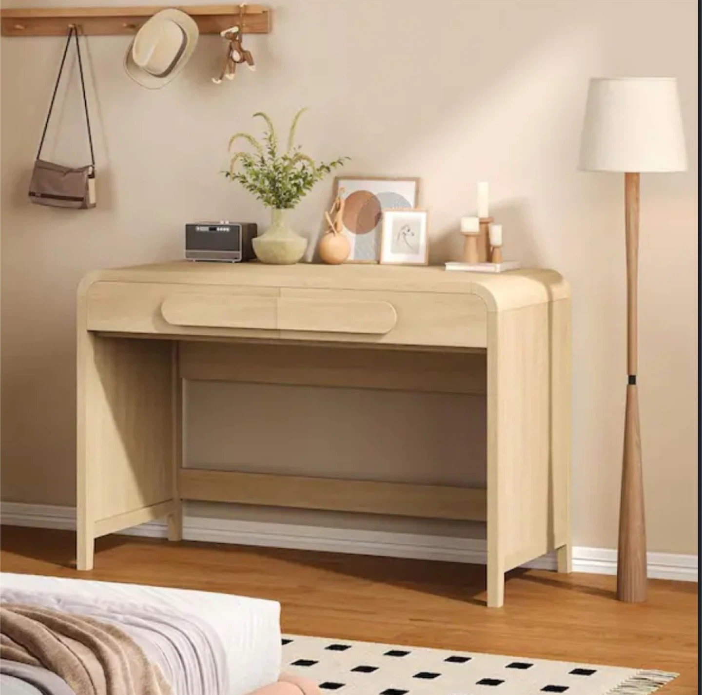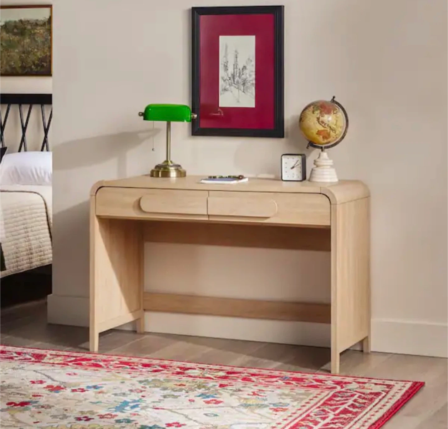 New Modern Boho Wood 2-Drawer Desk with Curved Statement Pulls