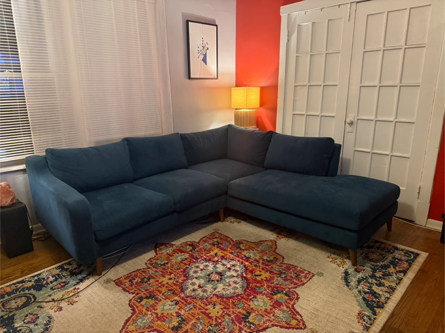Modern Blue Sectional Sofa With Chaise – Great Condition
