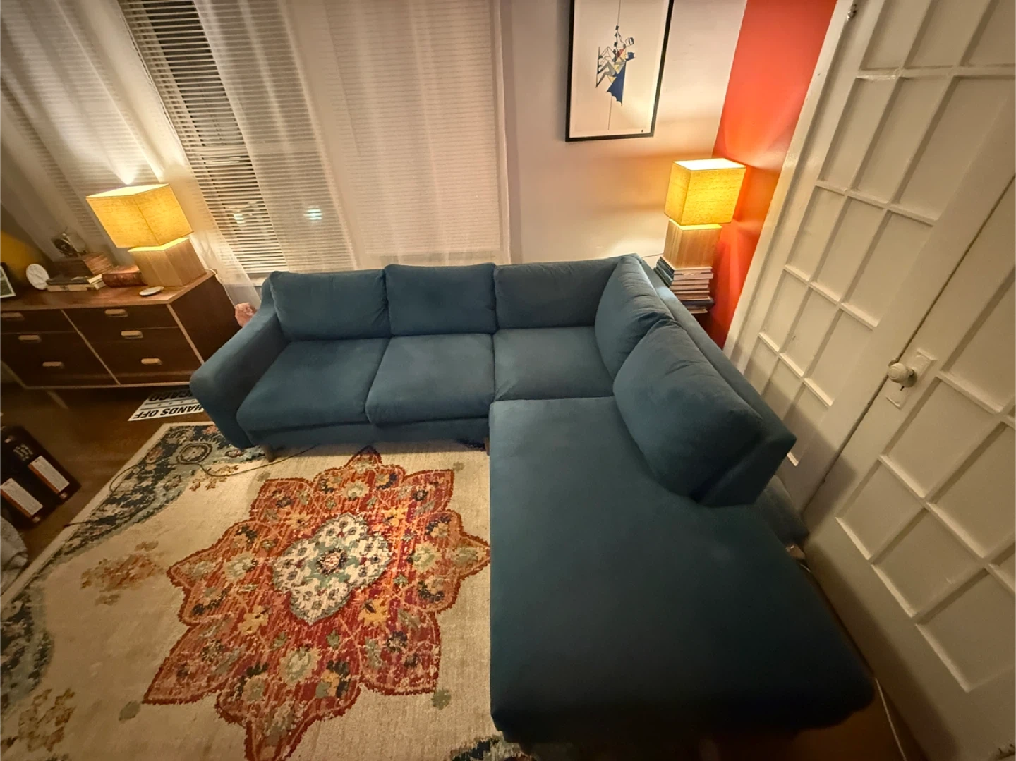 This sectional is ideal for apartments, living rooms, or anyone looking to add both style and comfort to their home. From a smoke-free home.