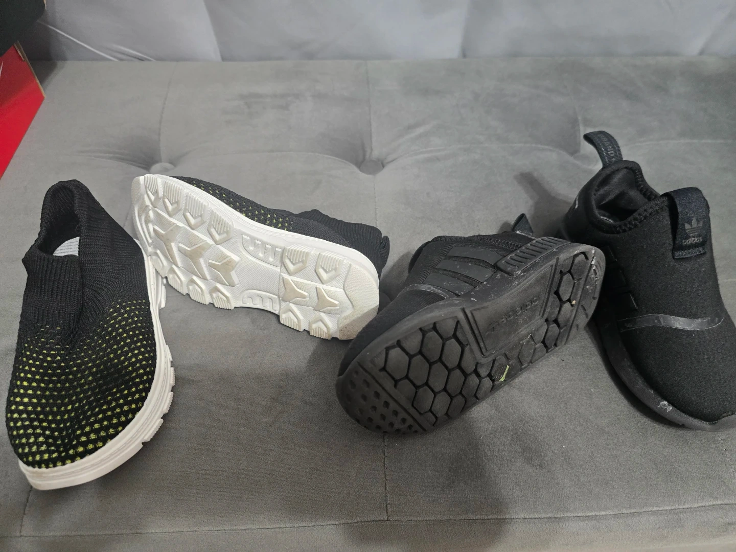 Selling a pair of Adidas NMD 360 kids sneakers in black! They're in good condition and ready for a new adventure. These slip-on sneakers are perfect for everyday wear and easy for kids to put on and take off themselves
