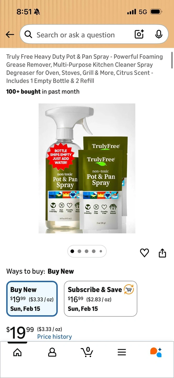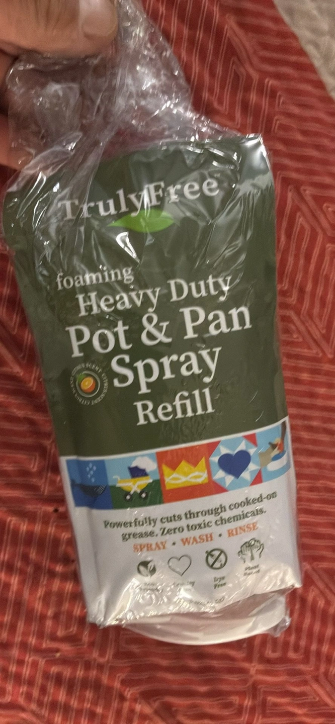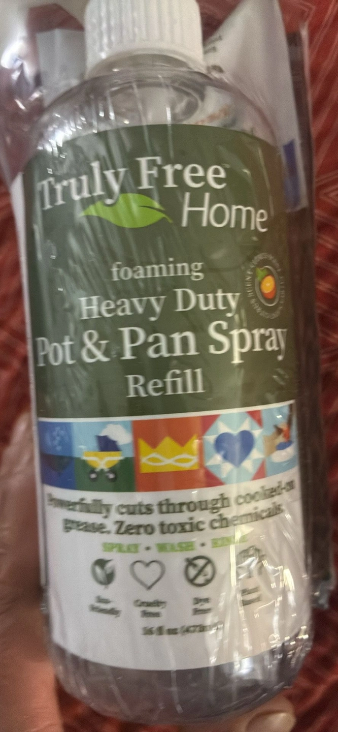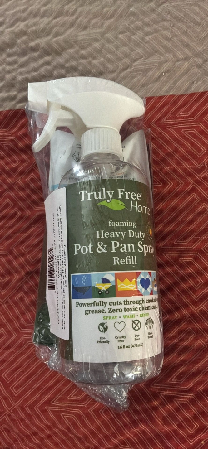 Truly Free Heavy Duty Pot & Pan Spray - Powerful Foaming Grease Remover, Multi-Purpose Kitchen Cleaner Spray Degreaser for Oven, Stoves, Grill & More, Citrus Scent - Includes 1 Empty Bottle & 2 Refill.