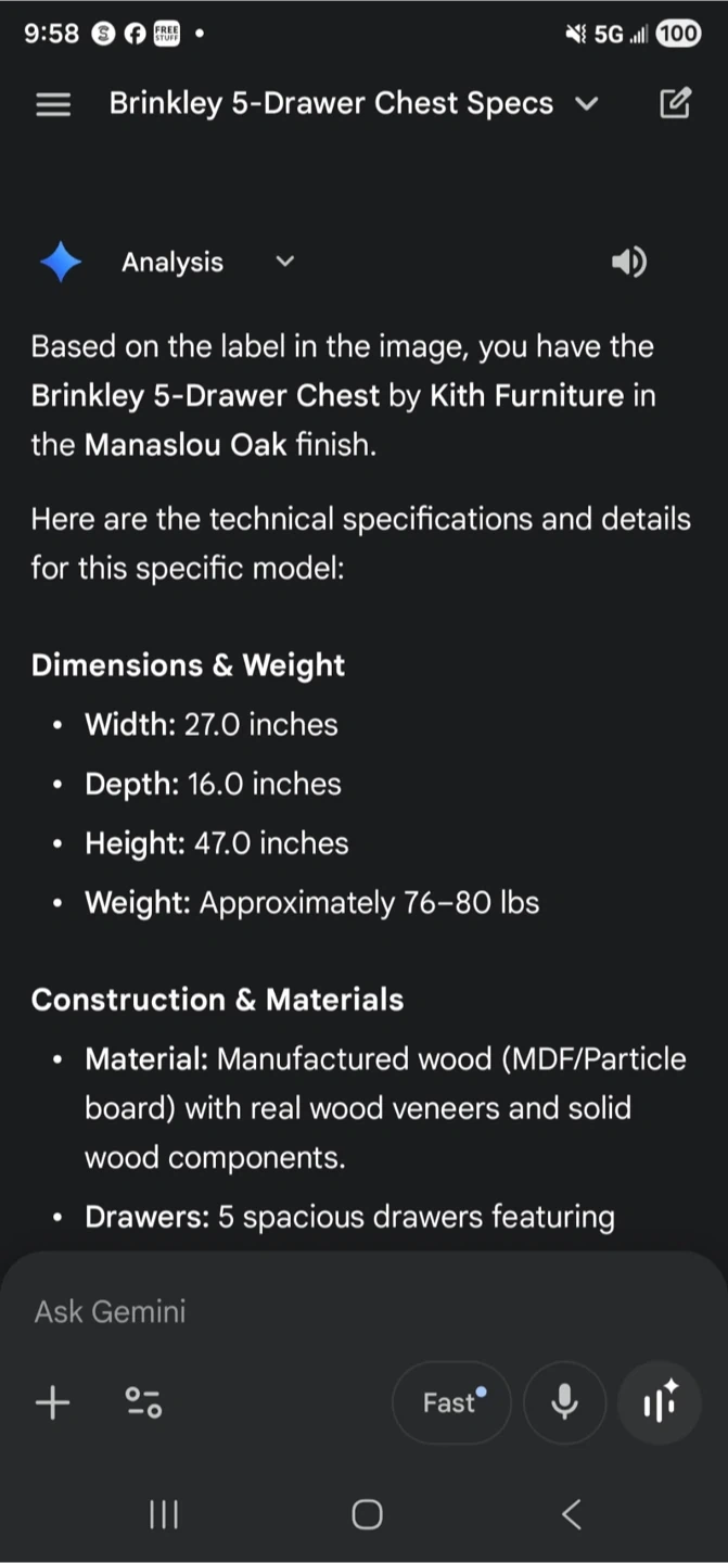 This 5-drawer chest is 31" wide and features a farmhouse style. It's constructed from manufactured wood with real wood veneers and solid wood components. The drawers are spacious and designed for storage.