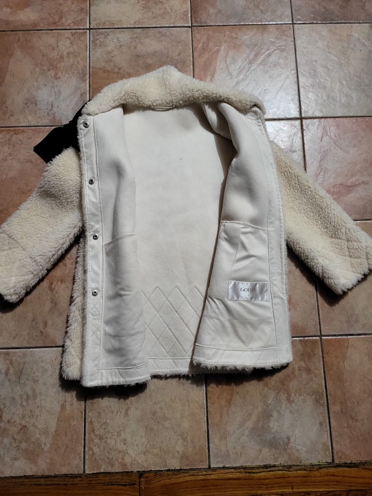 beige velour coat with detachable bow size small