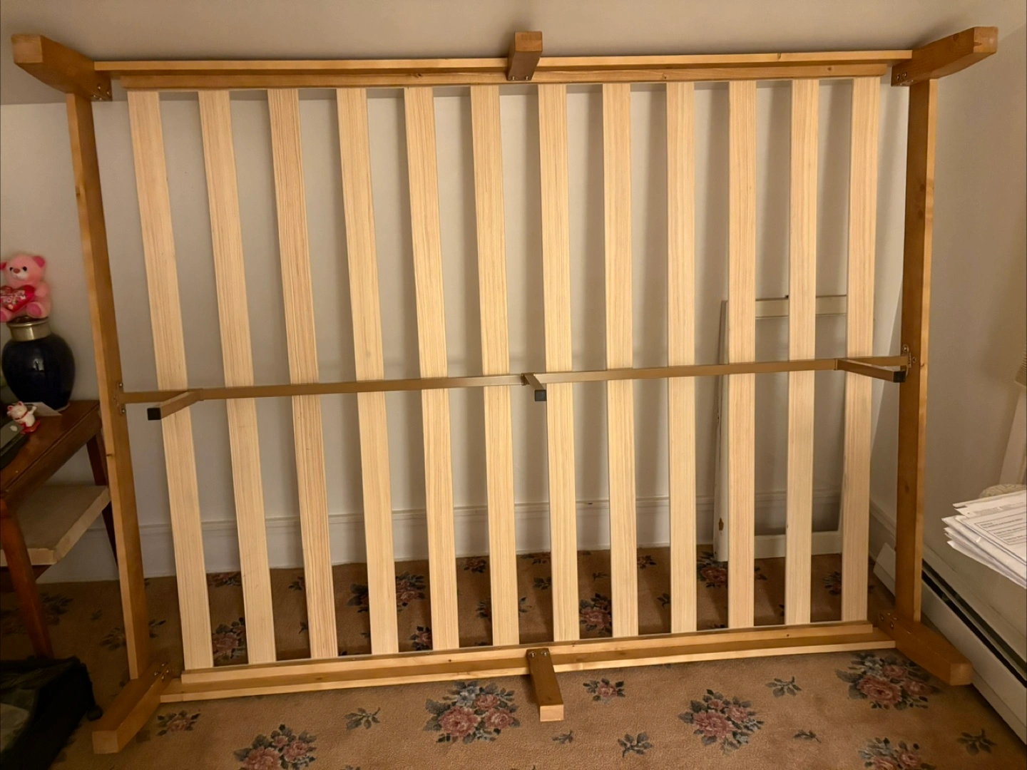 Selling a wooden bed frame. It’s in good condition and ready for a new home! Perfect if you're looking for a sturdy and reliable frame it’s a queen size bed. Selling it because I’m getting a new one :)