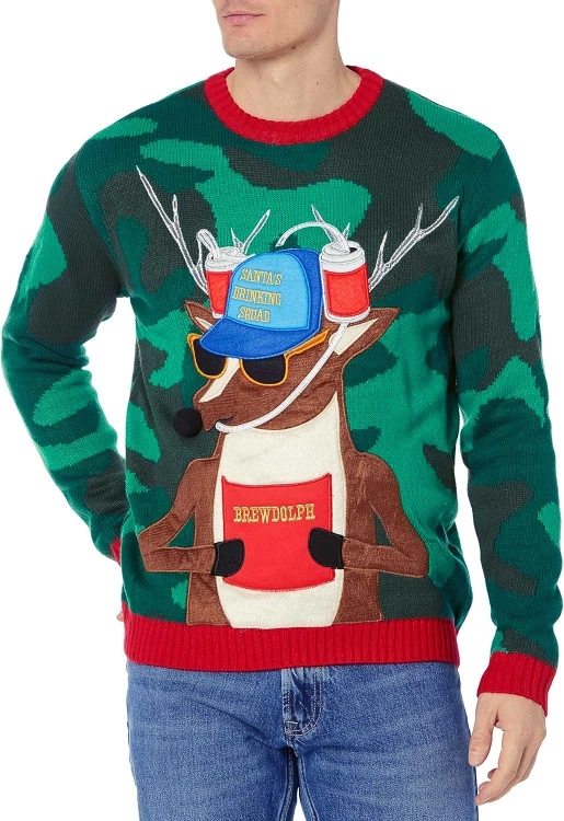 Ugly Christmas Sweater - Reindeer Drinking Squad