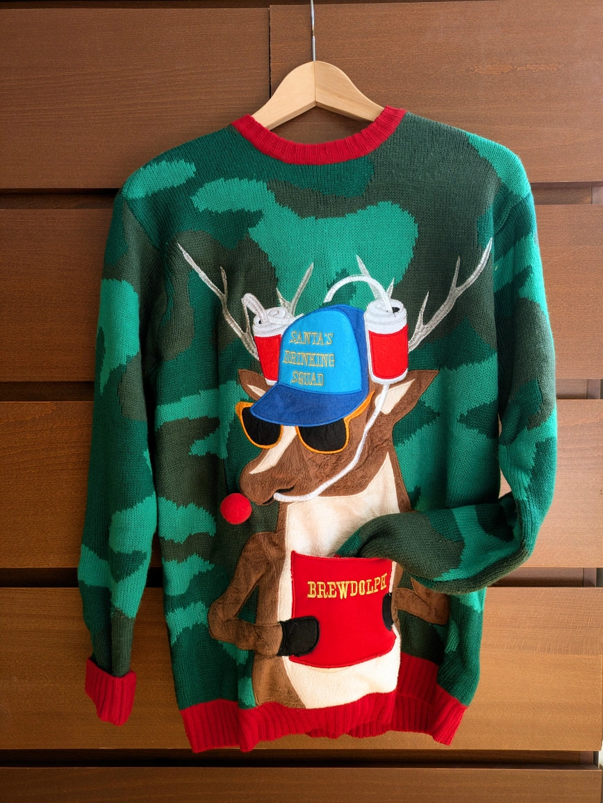 A must-have detail: the "Brewdolph" front pocket β¨ Perfect for your next holiday party or gathering.